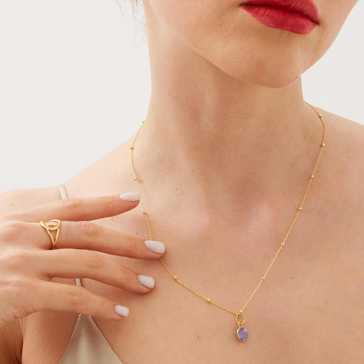 This Amethyst Round Pendant Necklace With Beaded Chain In Sterling Silver by Spero London is a whimsical yet elegant piece. The captivating round amethyst stone hangs from a delicate beaded sterling silver chain, adding a touch of playful charm to any outfit. Its unique design makes it a standout piece, perfect for both everyday wear and special occasions.