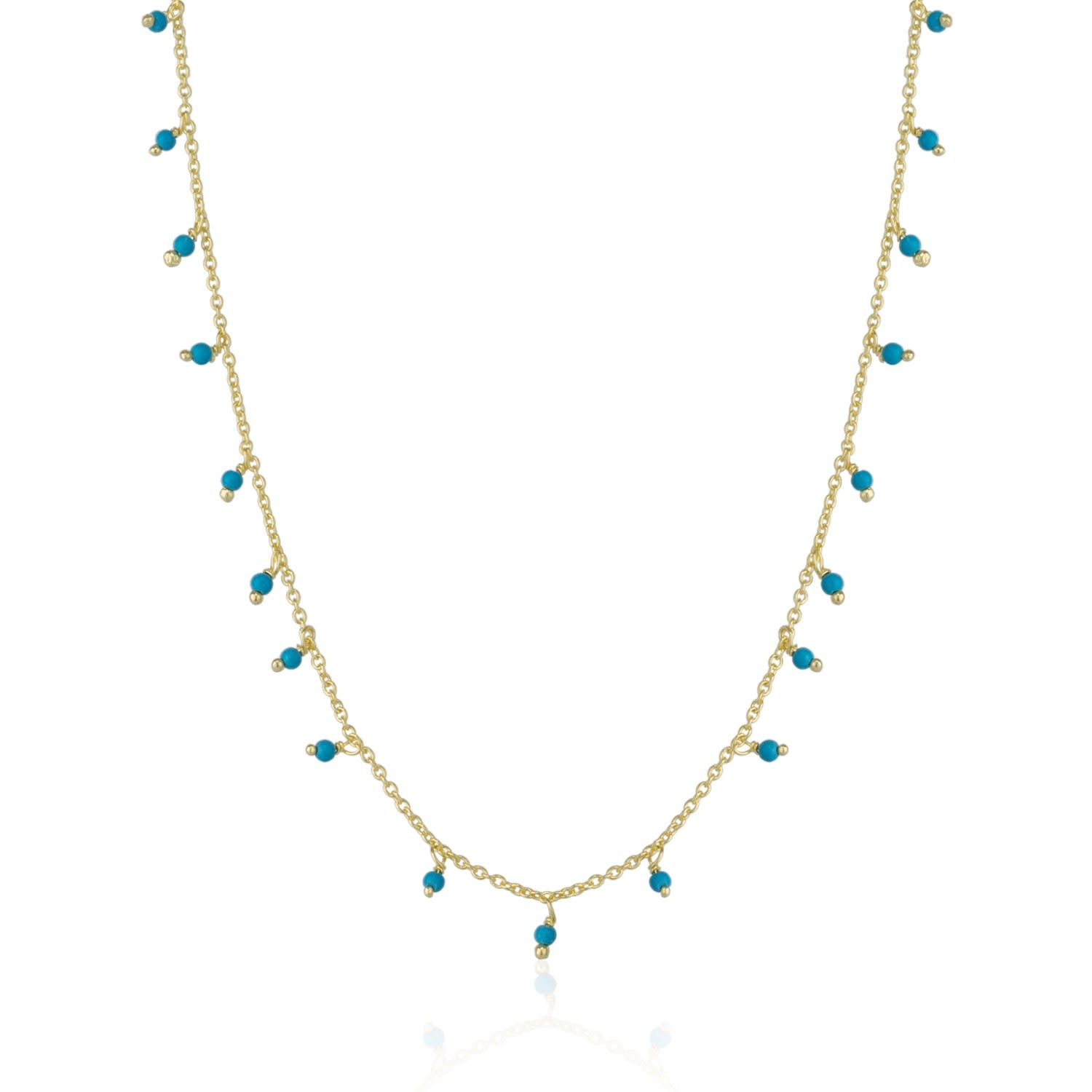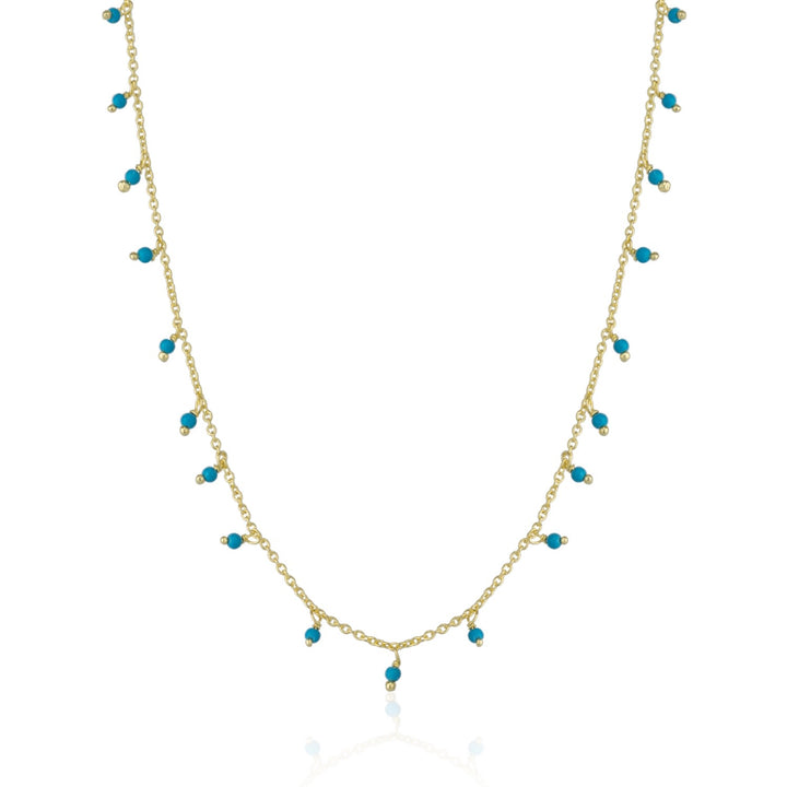 Blue Turquoise Beaded Sterling Silver Chain Necklace - Gold