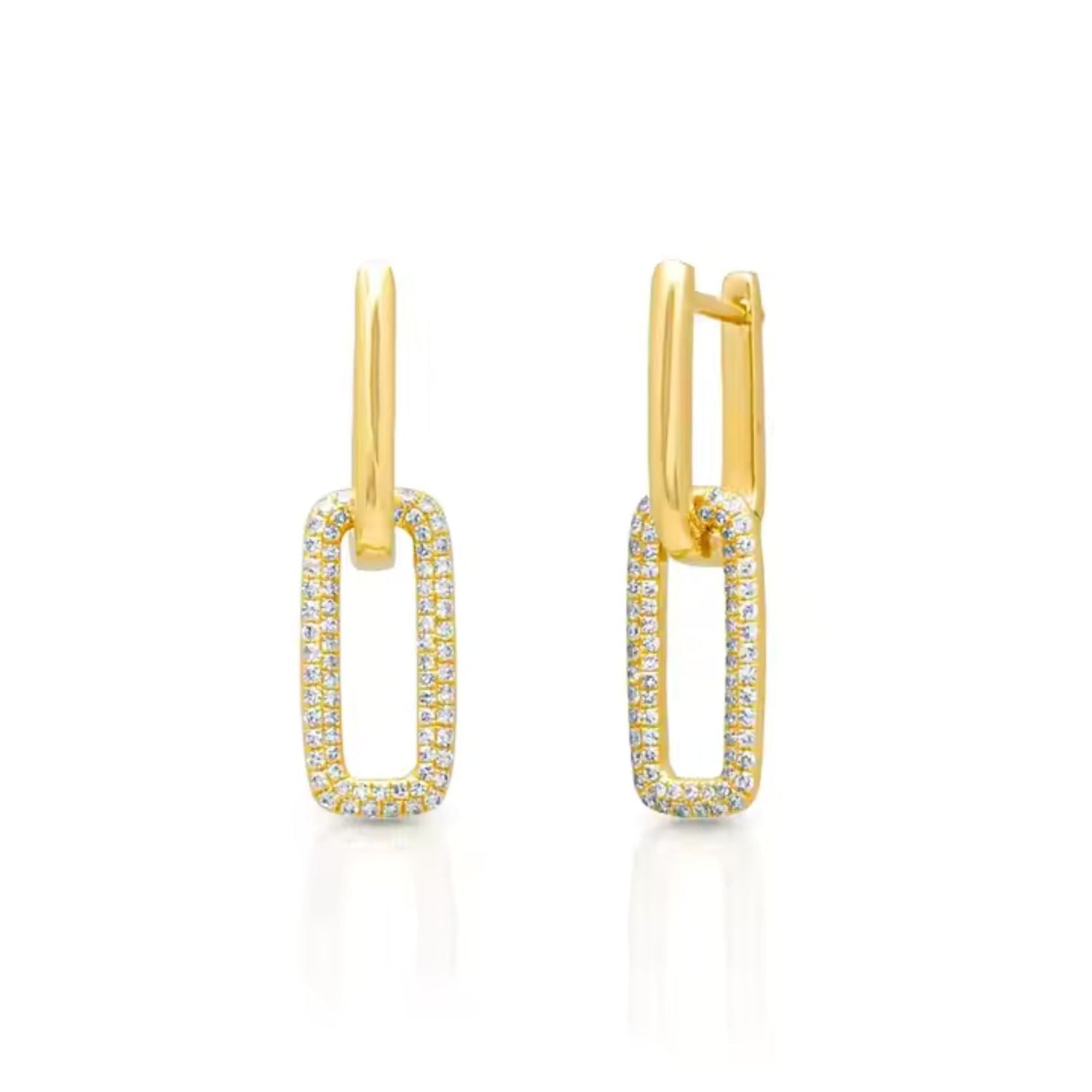 These Pavé Double Link Chain Gold Dangle Earrings by Nazzar redefine modern luxury with interlocking links encrusted in pavé crystals. Their bold silhouette and refined sparkle create an elegant day-to-night statement. With hypoallergenic and waterproof craftsmanship, they embody timeless glamour built to last.
