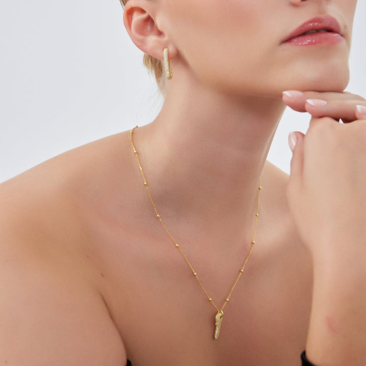 This Key Pendant Necklace With Beaded Chain by Spero London is a trendy and glamorous accessory. The intricate beaded chain leads to a gorgeous key pendant, making this necklace a symbolic and stylish piece. It's the perfect way to add a hint of glamour and a touch of metaphorical "success" to your everyday look.
