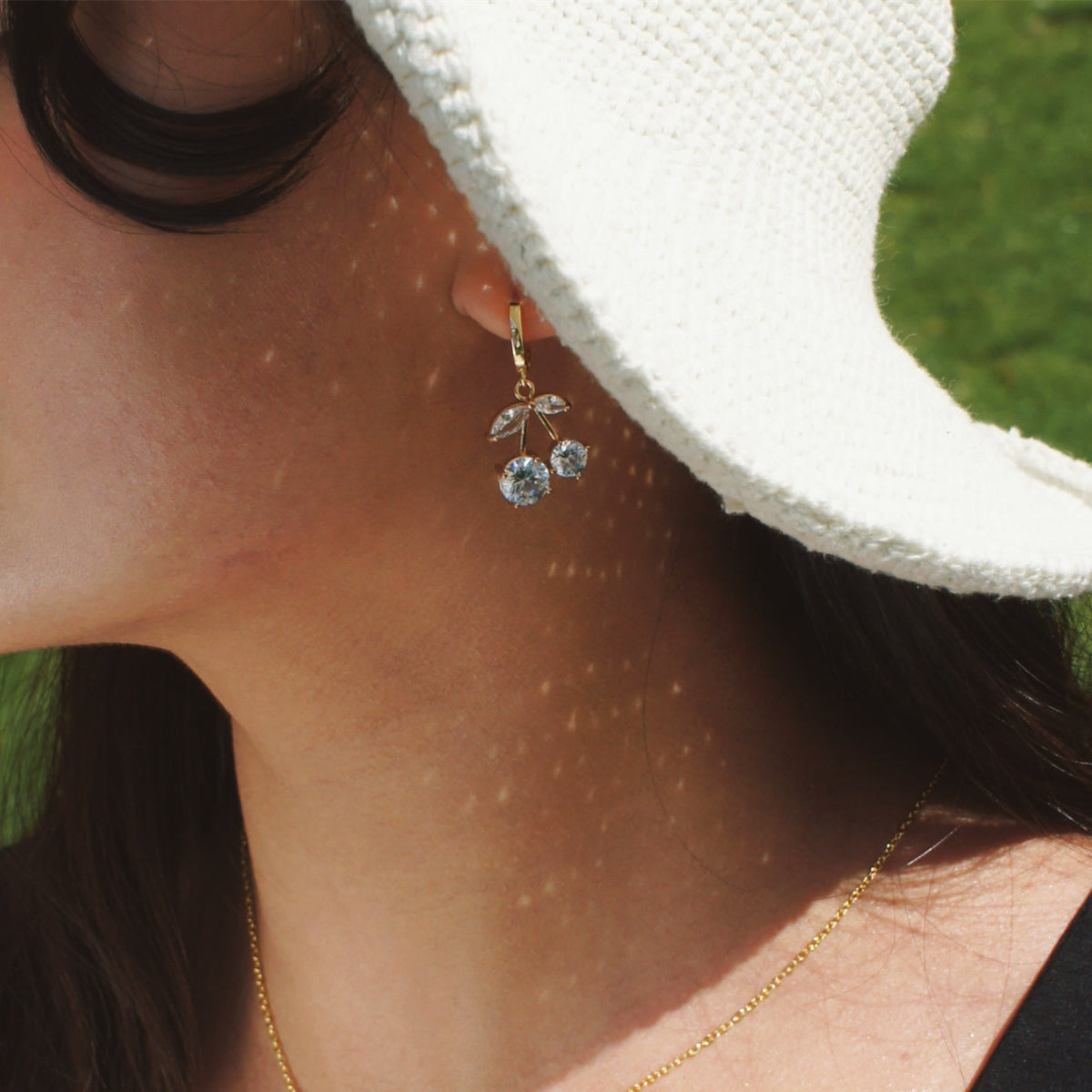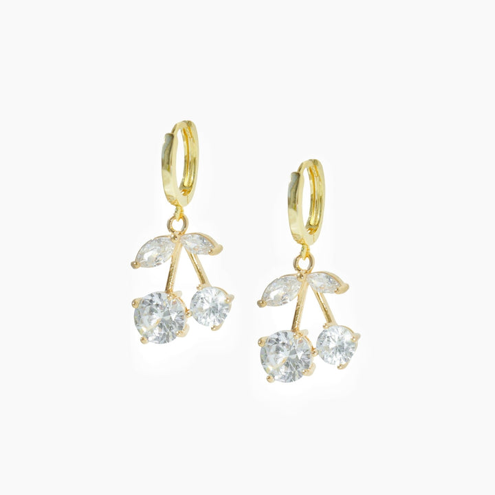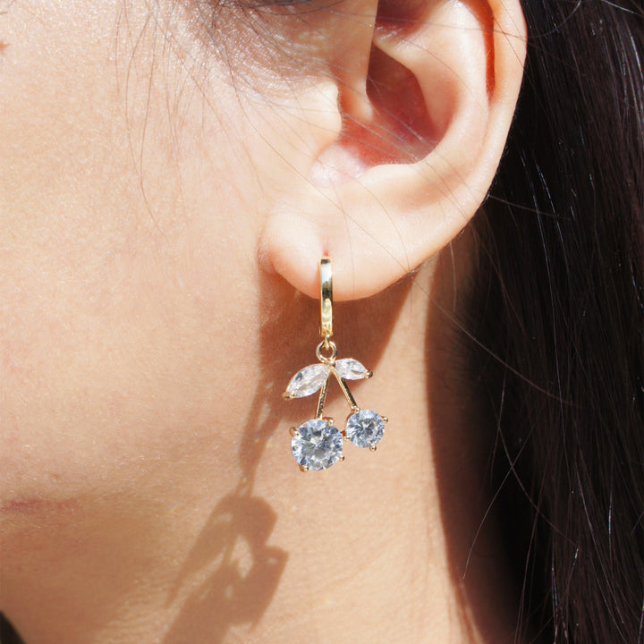 Cherry Pie Crystal Cherry Drop Huggie Hoop Earrings