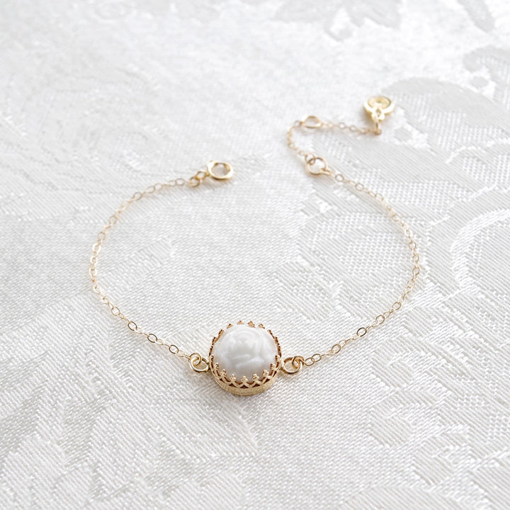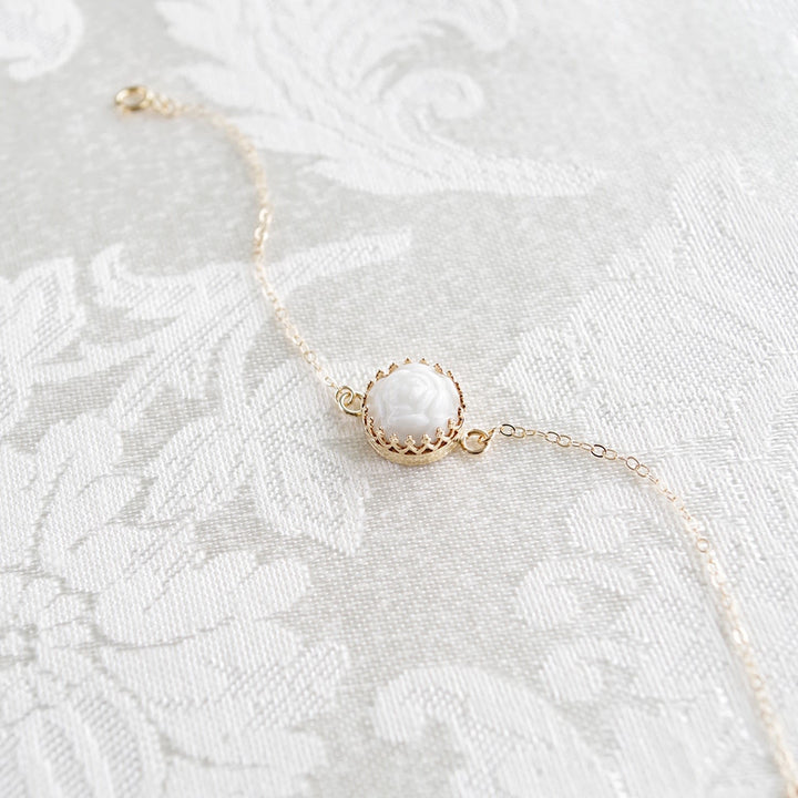 This Mini Porcelain Rose Charm Gold Bracelet by Poporcelain captures the eternal beauty of roses, the most iconic symbol of love. A delicate porcelain rose cabochon, fired at over 1200°C for lasting strength, sits in a gold-filled setting, radiating artisanal craftsmanship. Handmade in Denmark, it embodies both fragility and resilience—making it a meaningful piece to treasure.