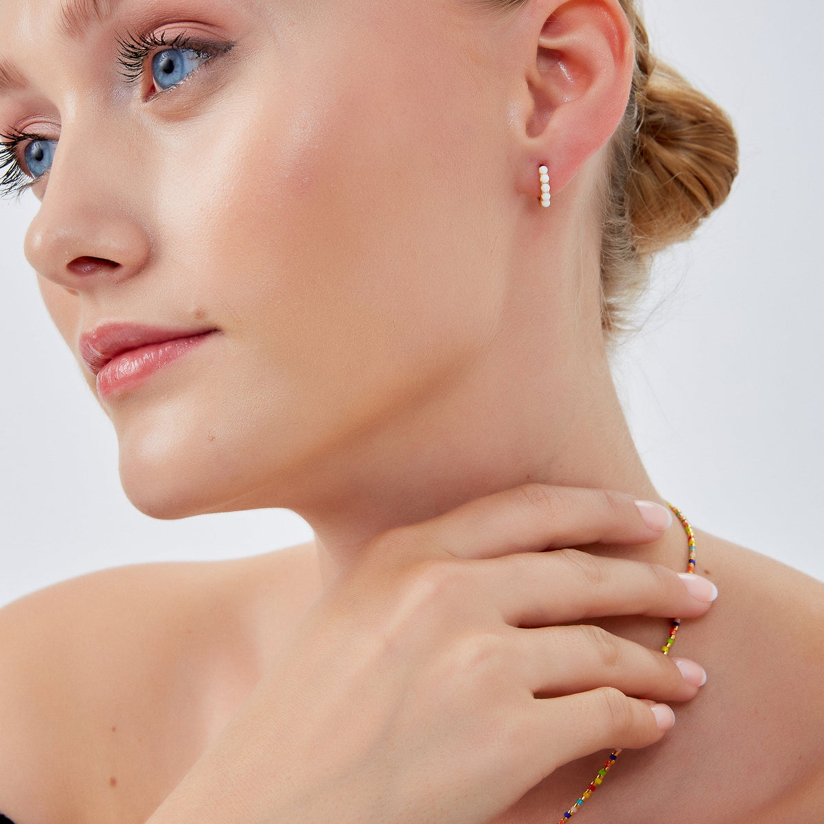 These Beaded White Opal Huggie Hoop Earrings by Spero London are a stylish and unique accessory that adds a touch of sophisticated charm to any look. The delicate beading and stunning white opal stones create a playful yet elegant design. These huggie hoops are a perfect treat for yourself or a special someone, offering a subtle pop of color and a modern twist on a classic style.