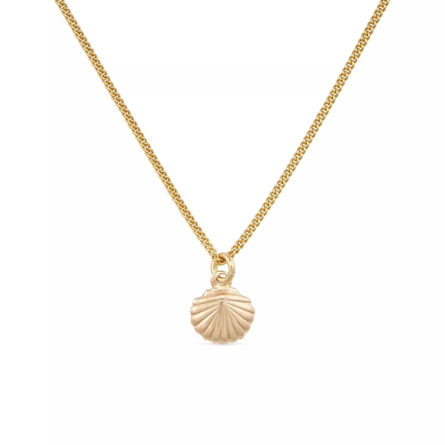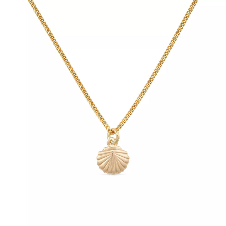 This necklace is made from solid sterling silver coated in genuine 18k gold plating. It features a 9mm ribbed shell and an adjustable chain measuring 44cm.