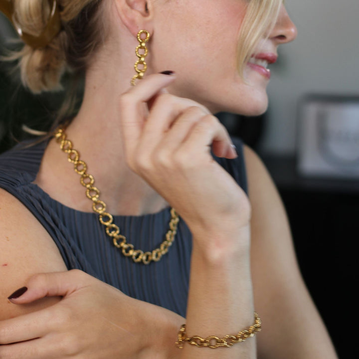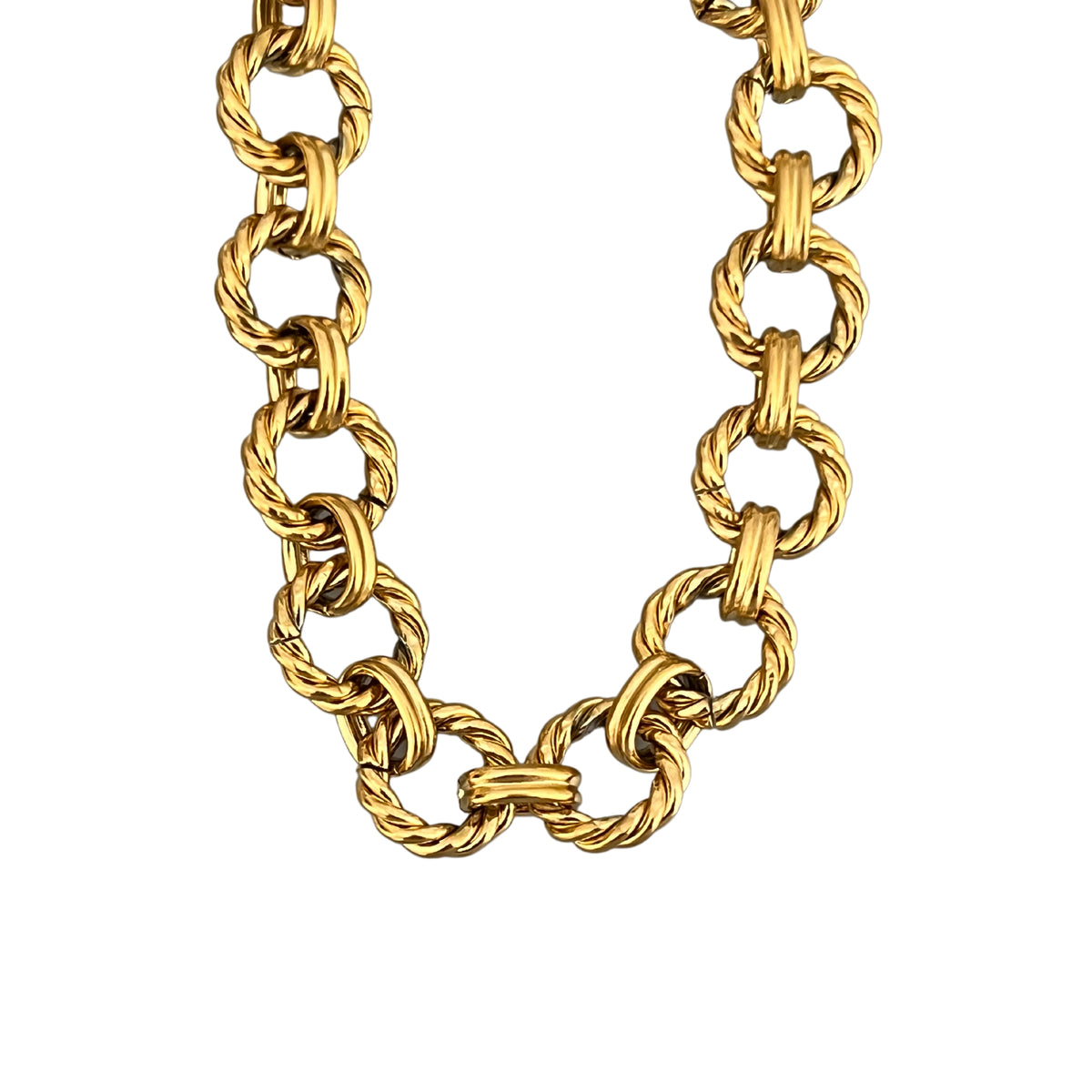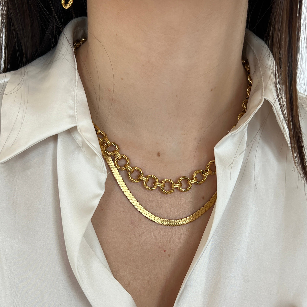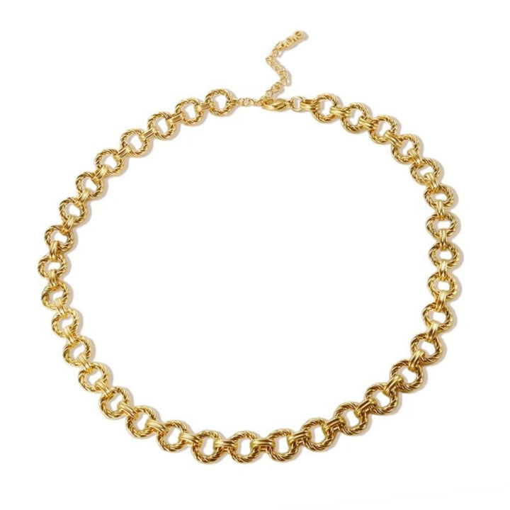 This Gold Twist Cable Link Chain Necklace by Nazzar is a sophisticated accessory with an elegant design of intertwined links. Made with a stainless steel base and a thick layer of high-quality 18k gold plating, this necklace is waterproof, tarnish-free, and sweatproof. Its timeless design seamlessly blends refinement and contemporary charm, making it perfect for both everyday wear and special occasions.