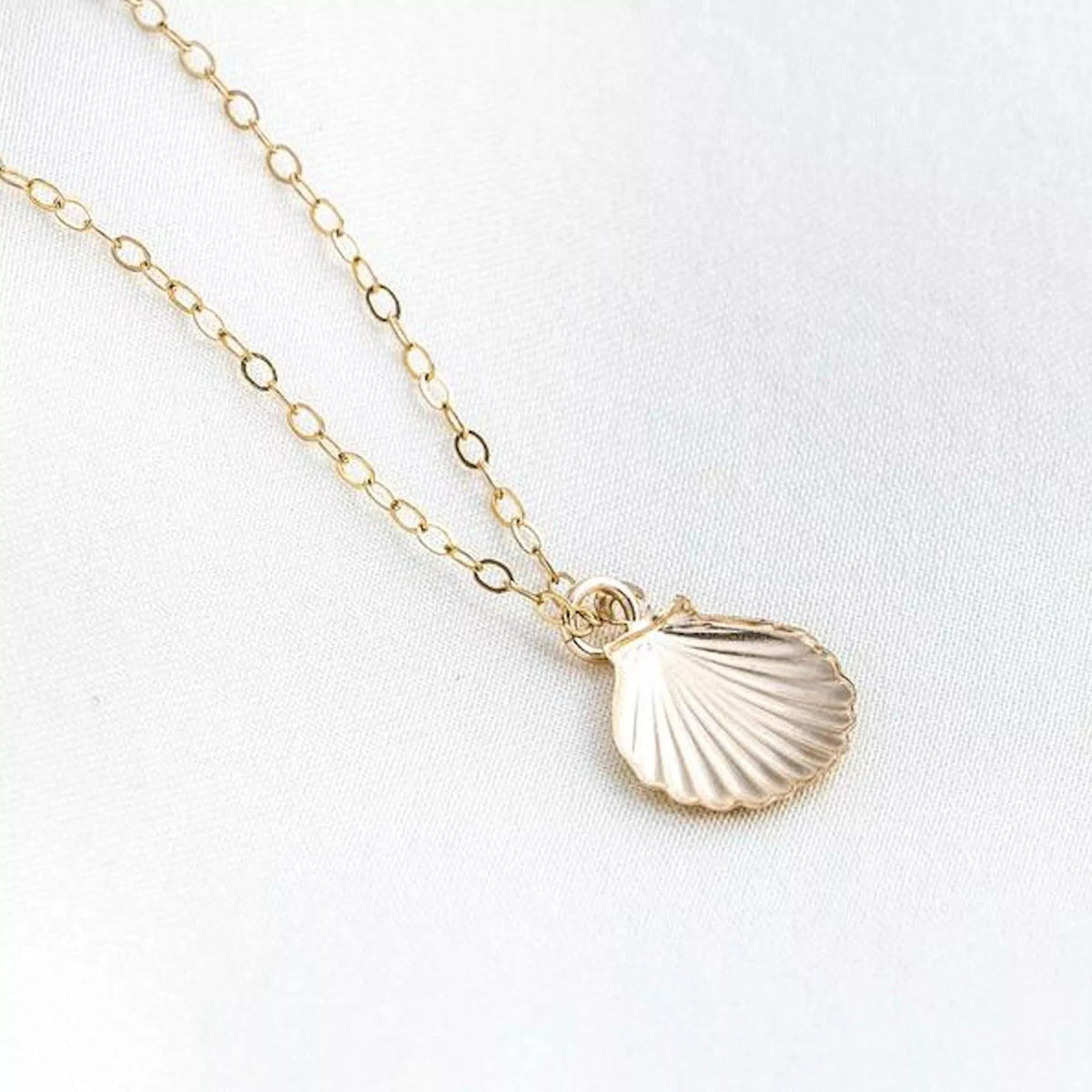 The Dainty Gold Large Shell Clam Necklace by Elk & Bloom is a charming accessory that adds a touch of sparkle. The necklace is made entirely of solid sterling silver and is then coated in genuine 18k gold plating. It features a large 14mm ribbed shell. The necklace chain measures 44cm with an extender chain, making it a perfect gift that can be adjusted to the best length.