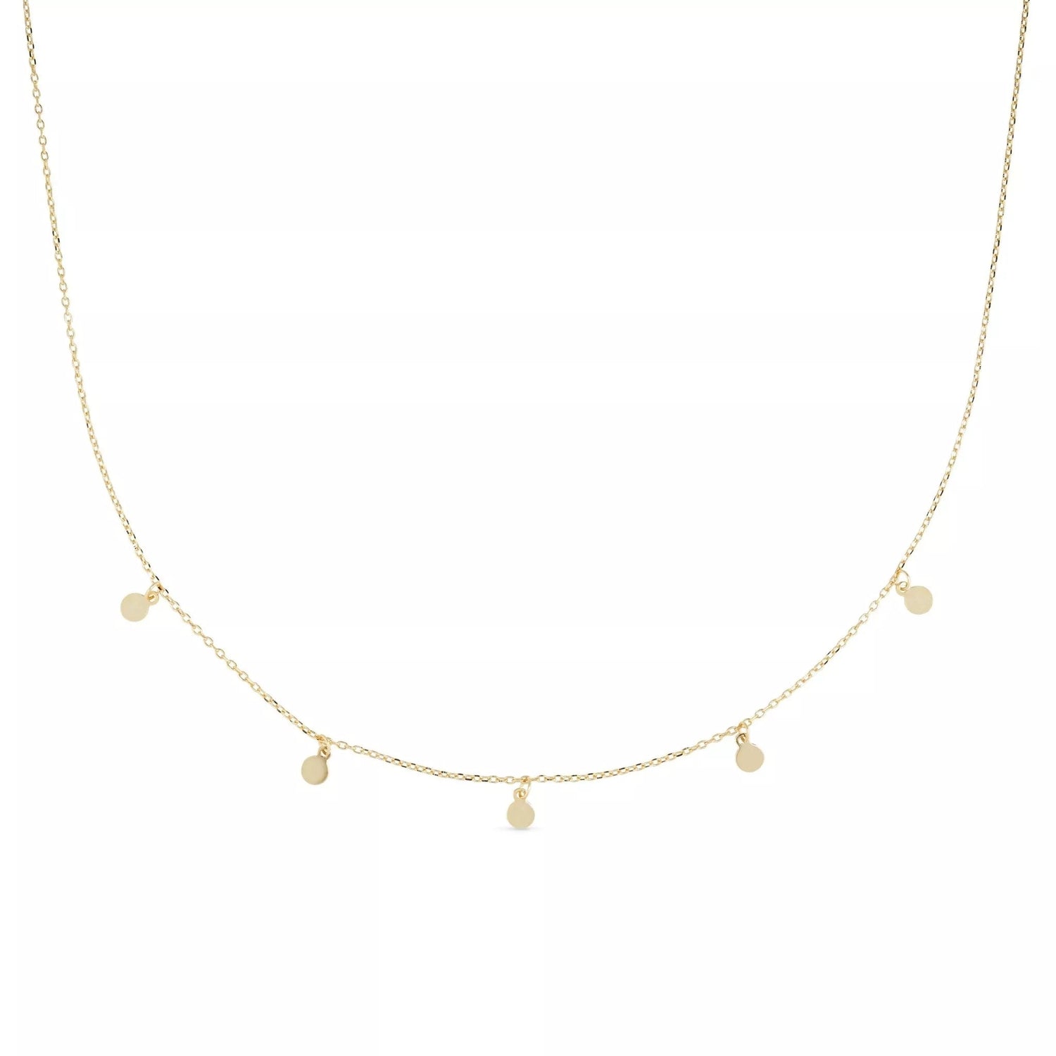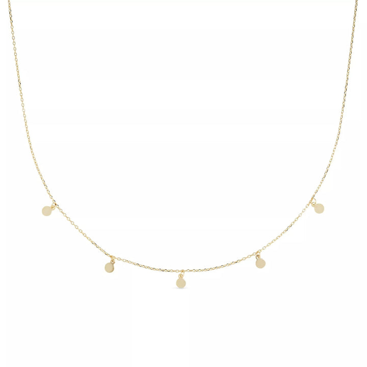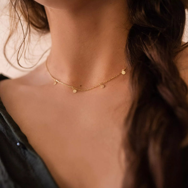 This Dainty Gold Disc Choker Necklace by Elk & Bloom is a perfect accessory for anyone looking for a little sparkle. The necklace is made of solid sterling silver and coated in genuine 18k gold plating. It features a small beaded circle design and is adjustable from 39cm to 45cm. This dainty and elegant choker is perfect for gifting and for adding a chic, subtle statement to any look.
