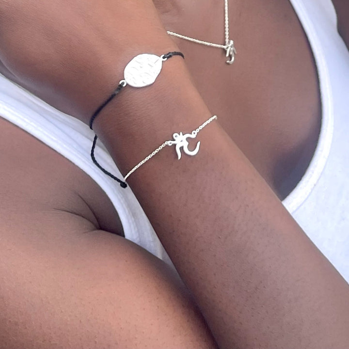 This Dainty Om Silver Bracelet by Sohavi is a delicate and meaningful piece perfect for styling with your other favorites. The Om or Aum symbol, a sacred sound representing the universe, is beautifully captured with a cubic zirconia set at the top, adding a touch of subtle sparkle. Chanted in ancient traditions, this symbol helps us evolve to higher states of consciousness, making this bracelet a powerful tool for meditation and personal growth. Its adjustable fine chain makes it versatile and comfortable for everyday wear.