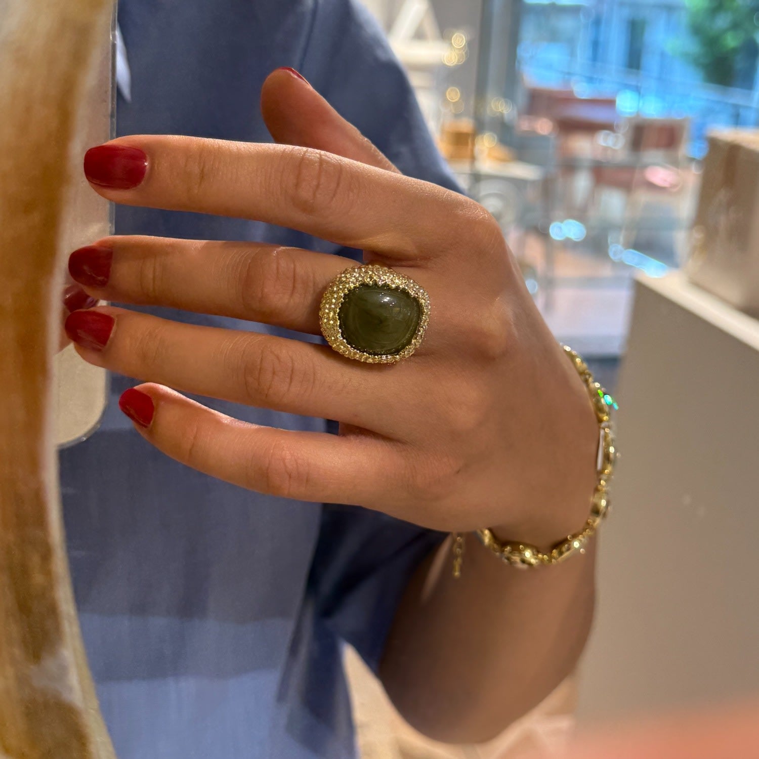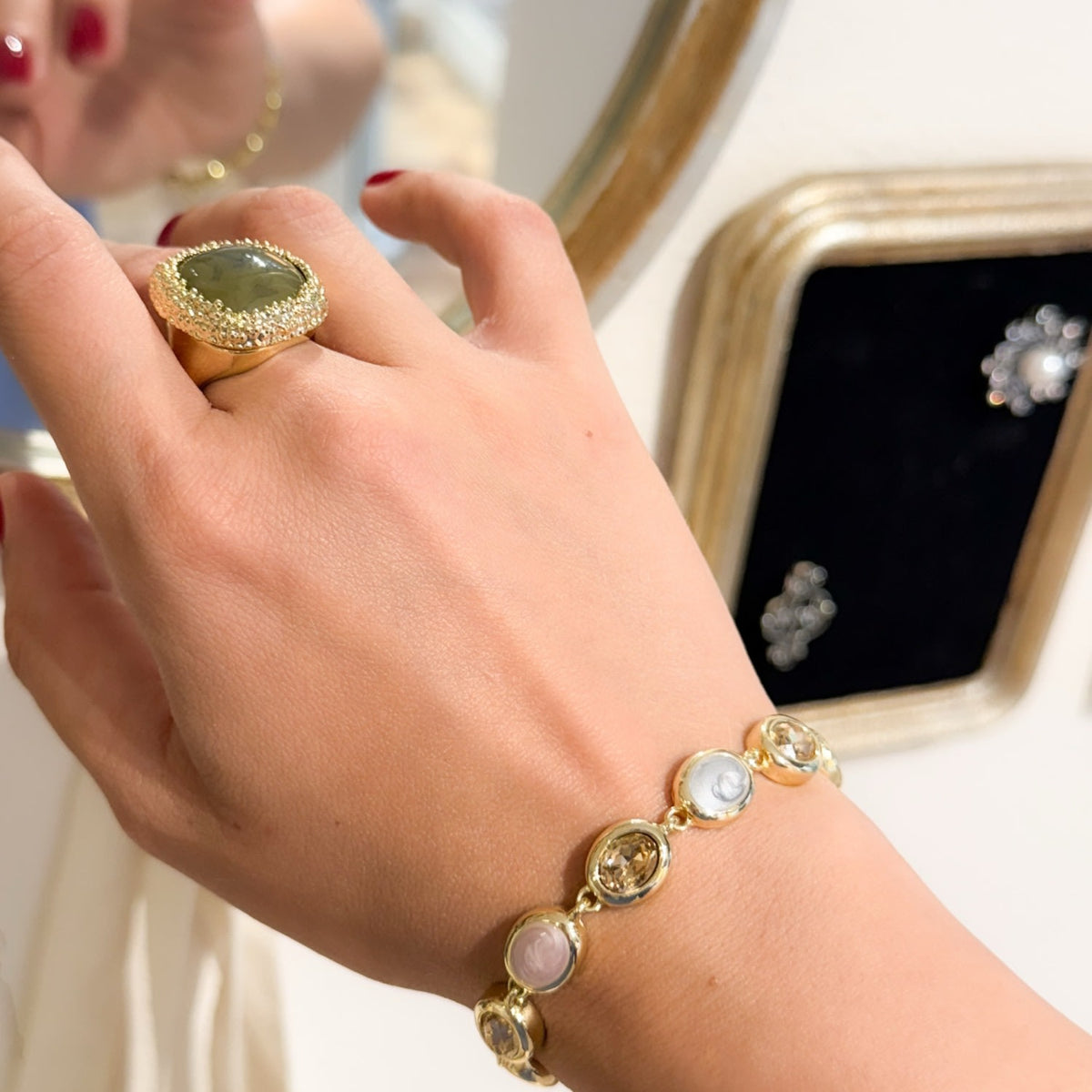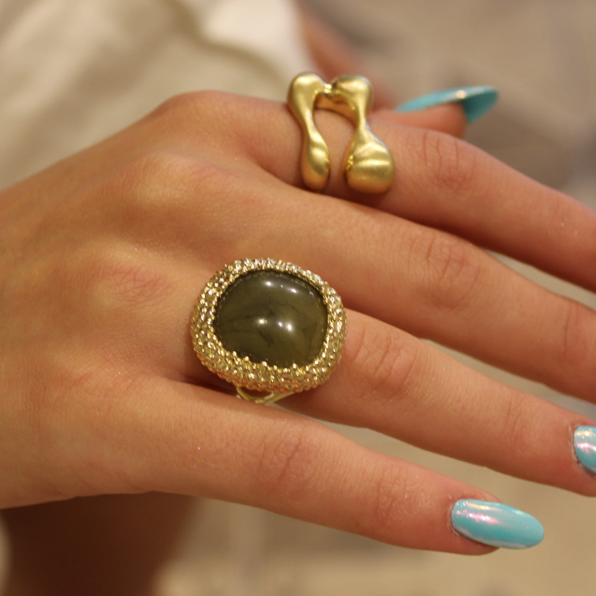 This Cote D’azur Ring by 1610Istanbul is inspired by the serene elegance of the French Riviera. The ring features a smoky quartz stone with muted gray tones that evoke peaceful coastal mornings. The rhodium-plated band provides a sleek and durable finish. This ring is perfect for everyday wear, as it's hypoallergenic, waterproof, and anti-tarnish, offering a subtle yet sophisticated connection to nature.