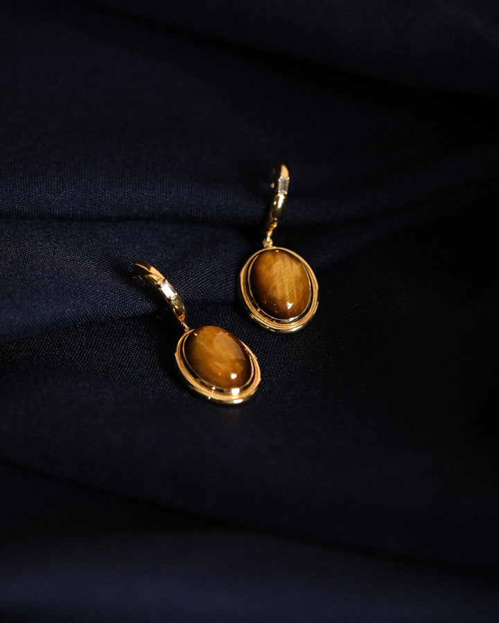 Tigers Eye-Singularity Huggies 925 Silver Earrings