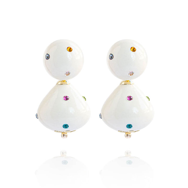 These Nina Earrings In Jet Cream by Saule Label are a captivating accessory, designed to make a bold and stylish statement. The sculptural drop features a stack of glossy, hand-painted beads finished with shimmering Austrian crystals. Their round and radiant design ensures they will be noticed from every angle, exuding confidence and a hint of glamour. These earrings are a work of art, perfect for those who are not afraid to be seen and appreciate a piece that combines artistic craftsmanship with a flirty, bold aesthetic.
