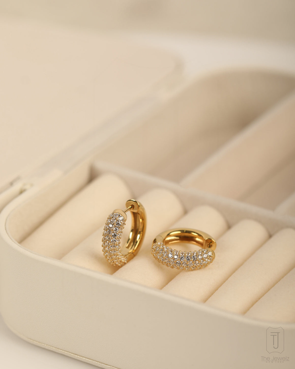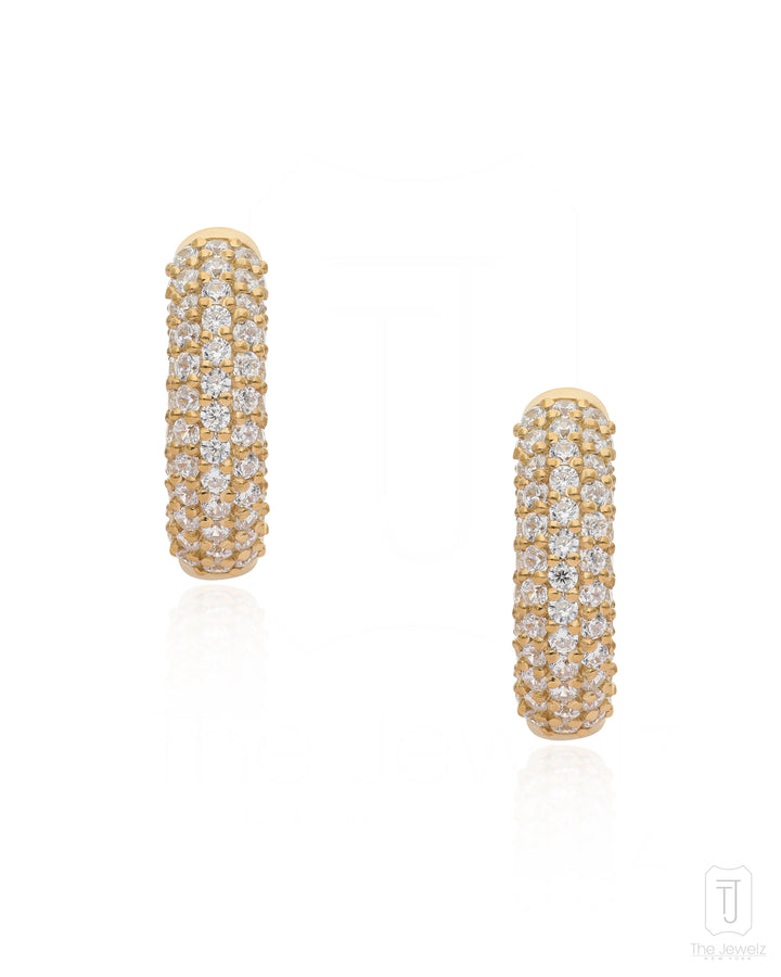 These Trinity Glow' Silver Huggies Earrings by The Jewelz are designed to dazzle. These huggie hoop earrings feature five rows of pave cubic zirconia, adding a touch of bling to any outfit. They are lightweight and comfortable, making them a perfect accessory for both casual and formal occasions.