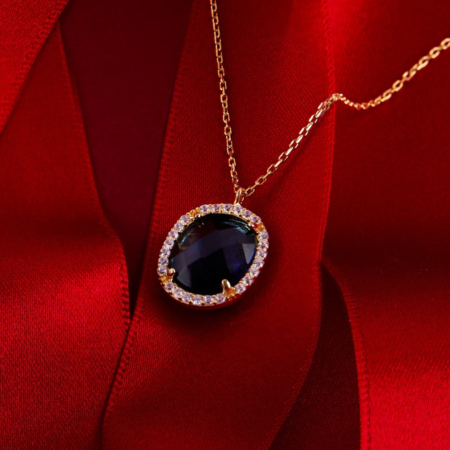 This Beatrice Oval Gemstone Pendant Necklace in Gold Sapphire Hydro by Latelita is a vision of timeless elegance. Its regal, multifaceted oval sapphire hydro gemstone is framed by micro-pavé cubic zirconia detailing that catches the light with dazzling brilliance. A sophisticated piece ideal for evening wear, it also makes a meaningful September birthstone gift and pairs beautifully with the Beatrice Earrings and Bracelet.
