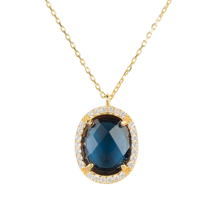 Beatrice Oval Gemstone Pendant Necklace Gold Sapphire Hydro