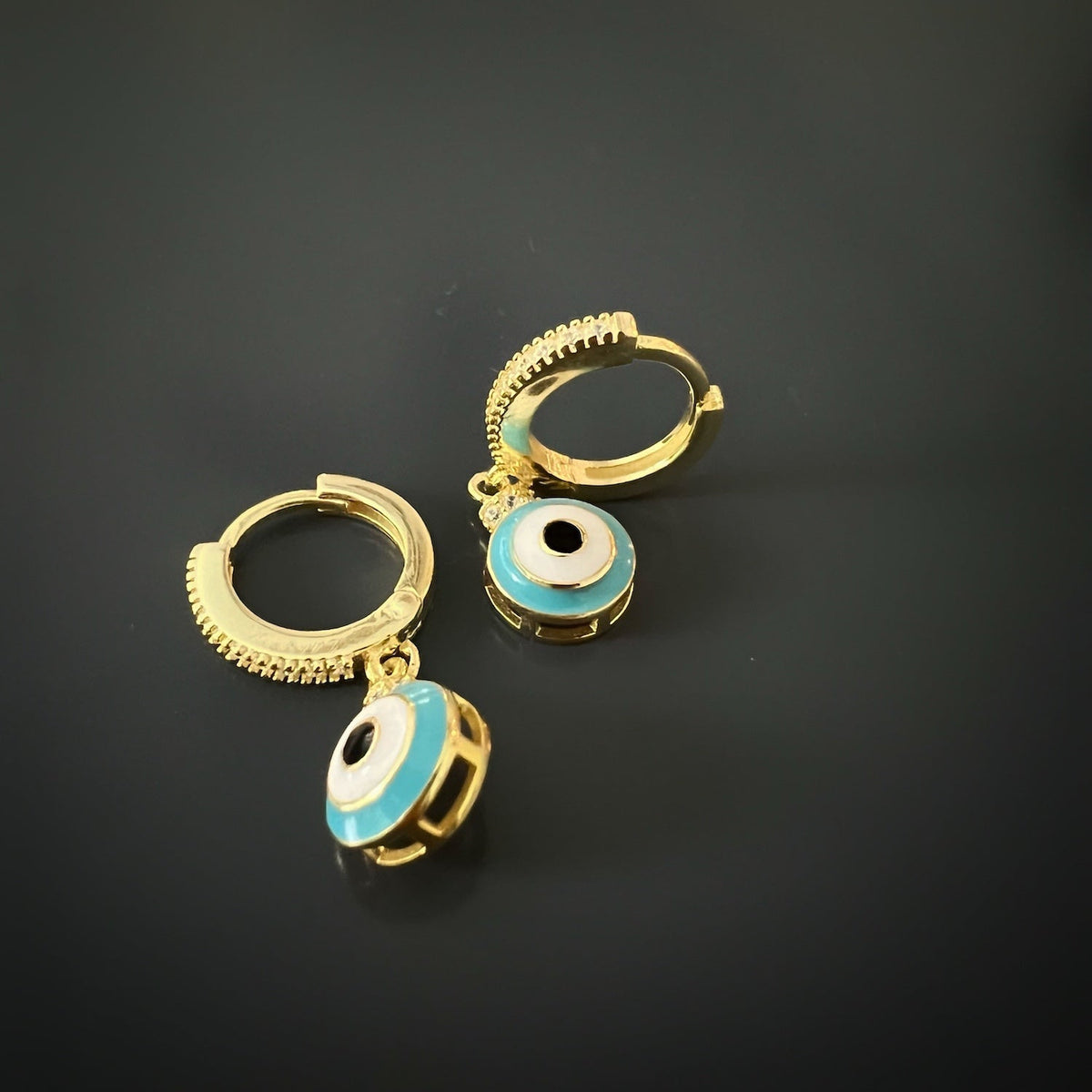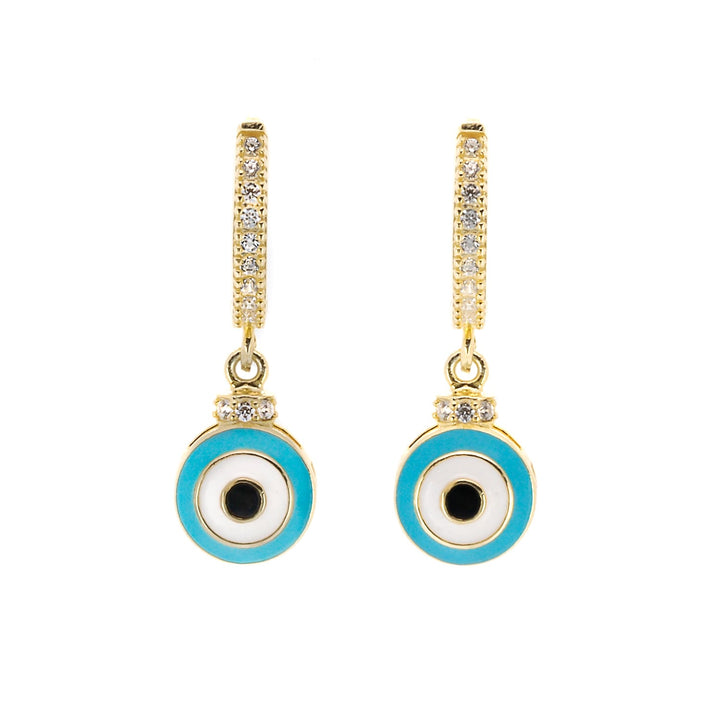 Turquoise Enamel Diamond Hoop Evil Eye Earrings - Turquoise