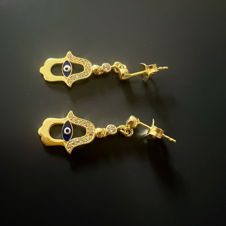 Blue Enamel Evil Eye Gold Plated Hamsa Earrings - Blue