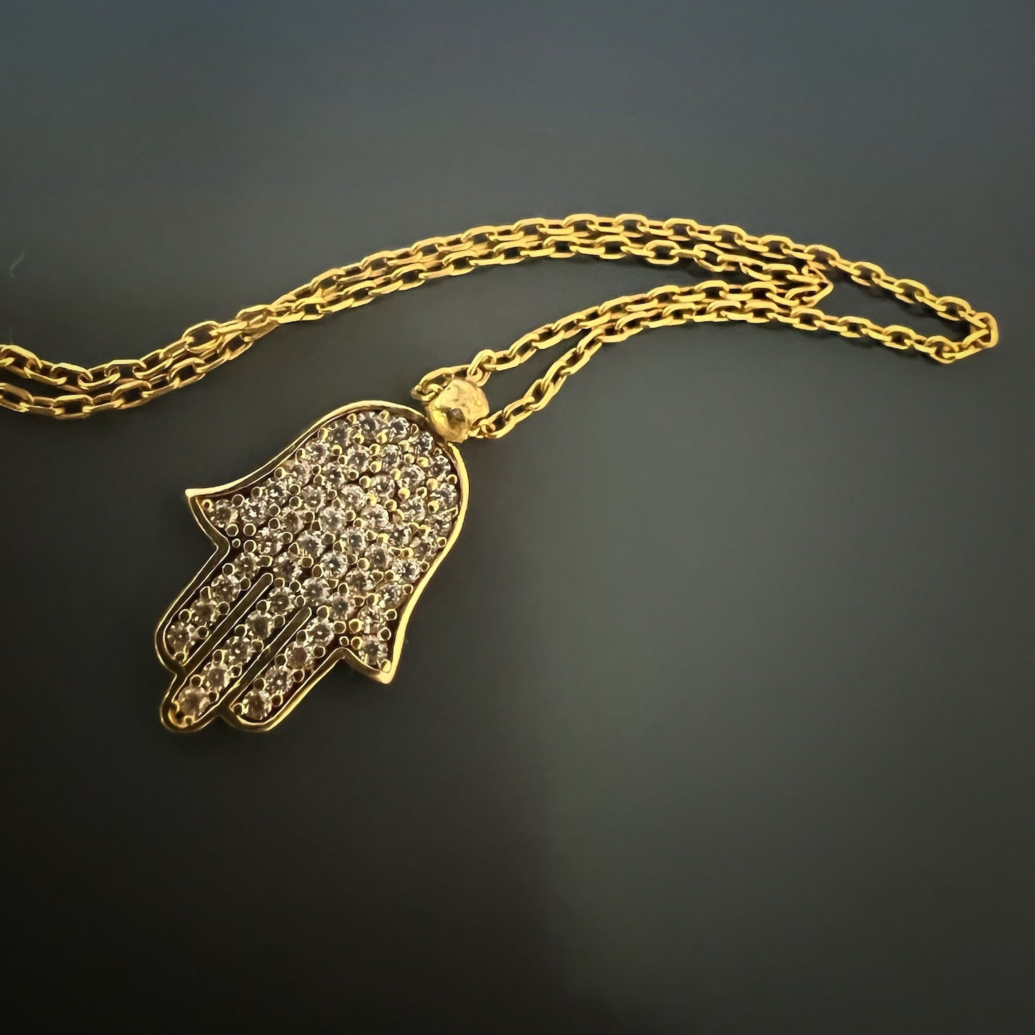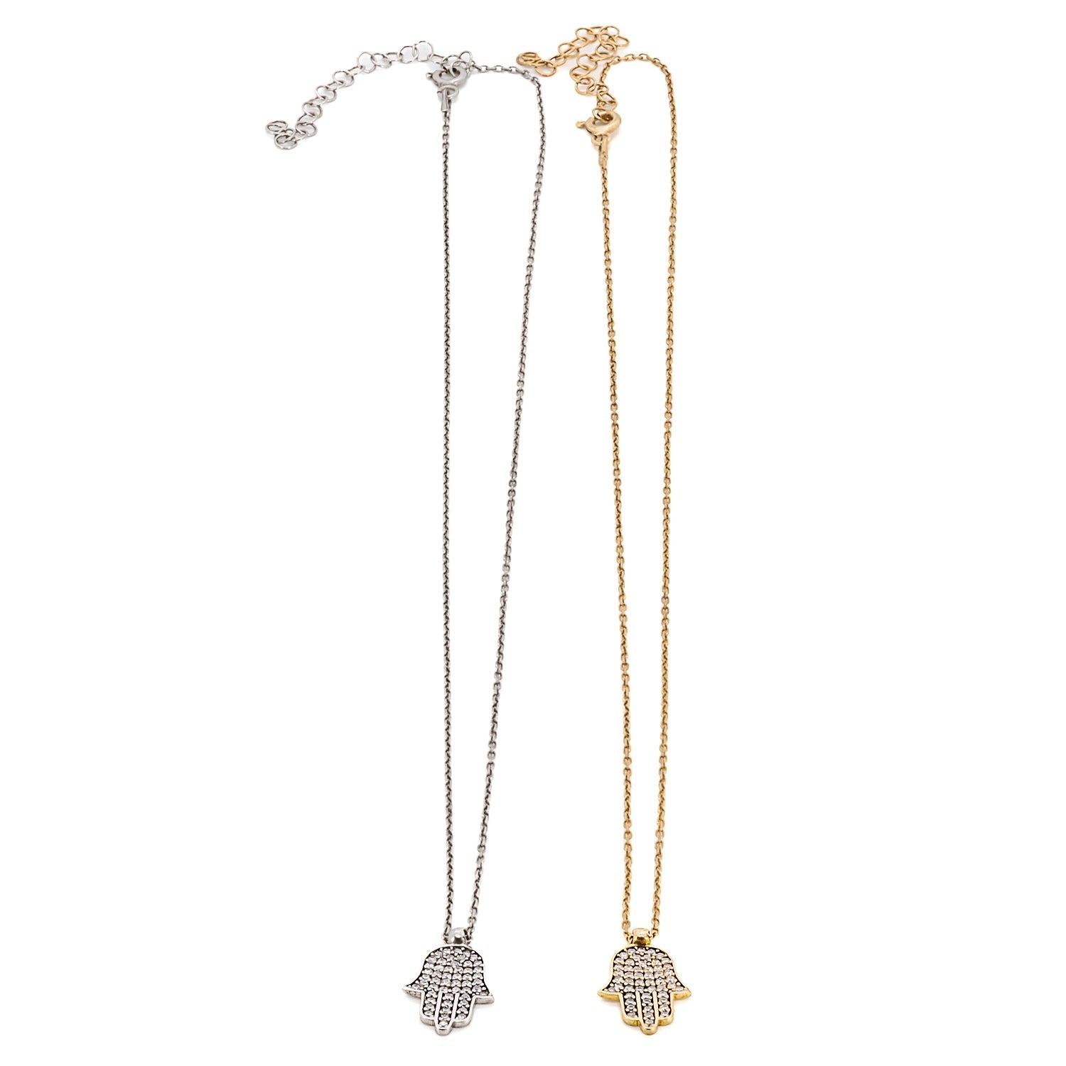 Dainty Diamond Hamsa Pendant Sterling Silver Chain Necklace - Silver