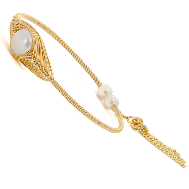 Cleopatra Gold & Pearl Tassel Cuff Bracelet - Gold