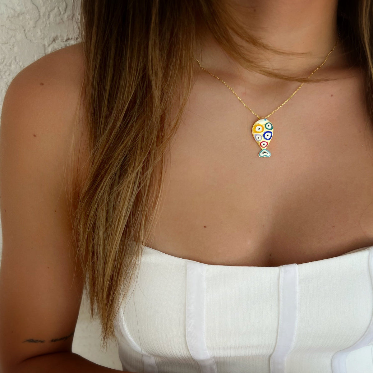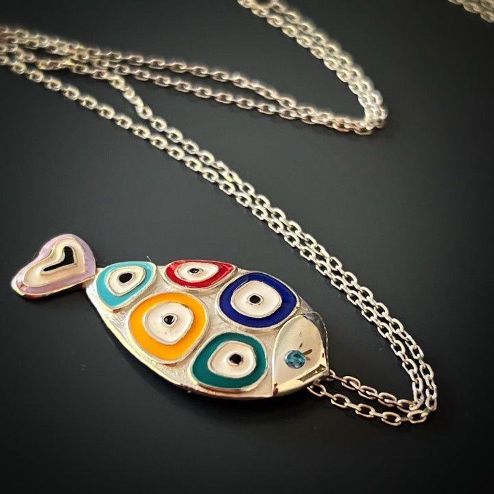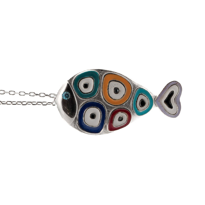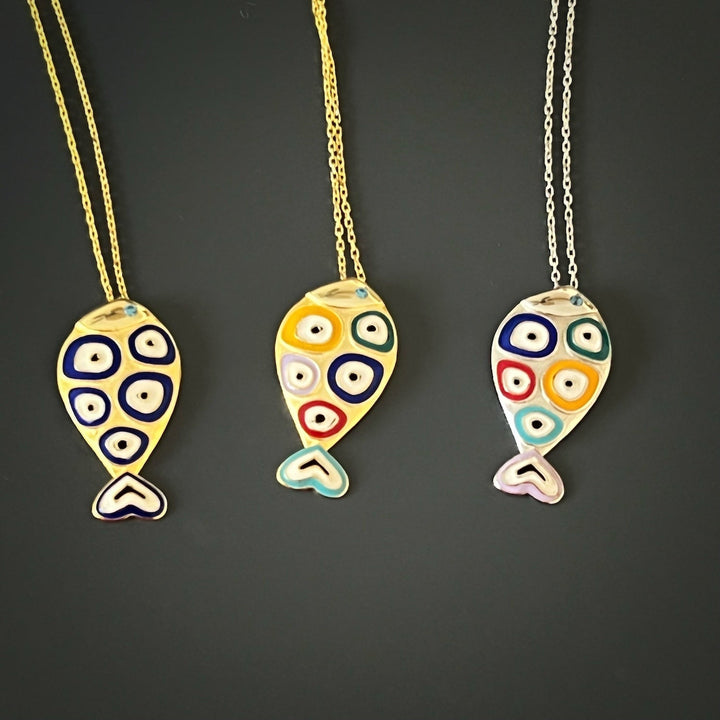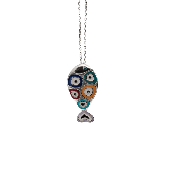 Silver Evil Eye Fish Necklace - Silver