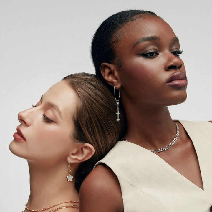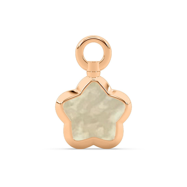 The Milky Dust Charm - Star Charm - Rose Gold by Oni Fine Jewelry is a beautifully sophisticated tribute to the cosmos. Inspired by the stardust of the Milky Way, this charm features a mother of pearl stone that gives off a subtle iridescence and an understated elegance. Its unique twist-and-lock mechanism allows it to be easily attached to any necklace, bracelet, or earring, ensuring the charm always sits perfectly. This charm adds a sophisticated and subtle touch to any outfit.