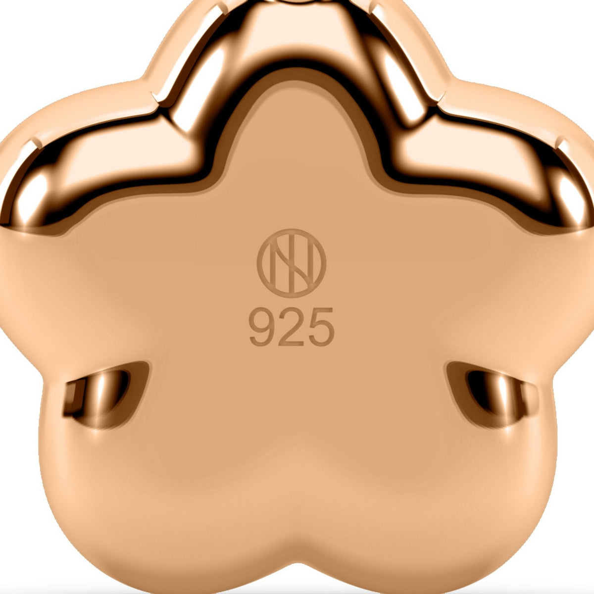 This charm is crafted from 925 sterling silver and plated with 14k rose gold, featuring a mother of pearl stone with an approximate 7.6 total carat weight.