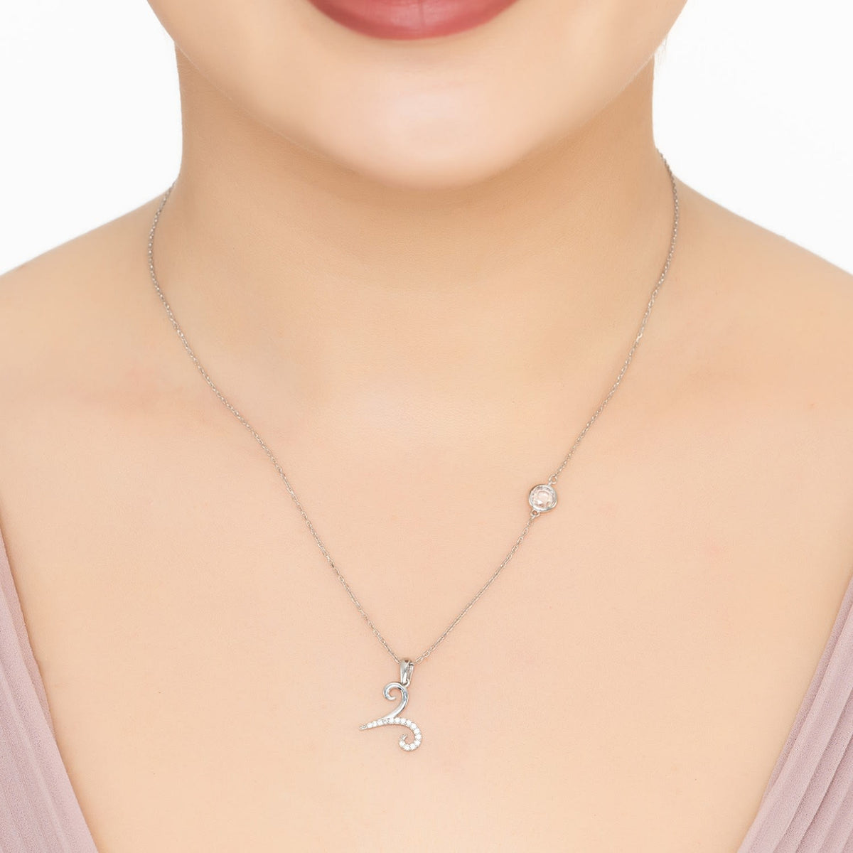 Zodiac Birthstone Aries Necklace Cubic Zirconia Silver