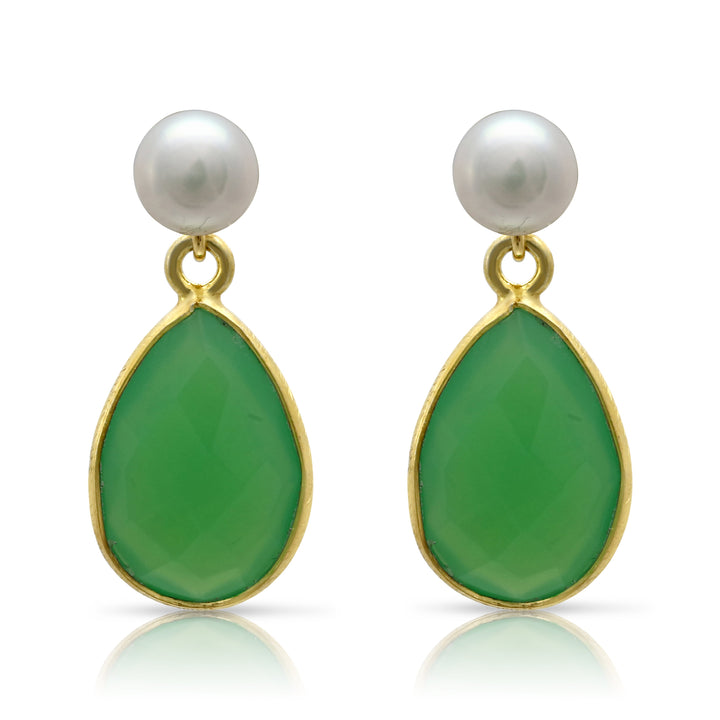 Clara Cultured Freshwater Pearl & Onyx Chrysophase Drop Earrings