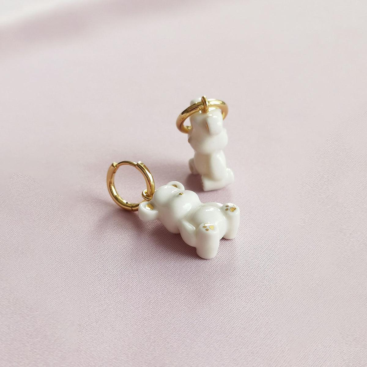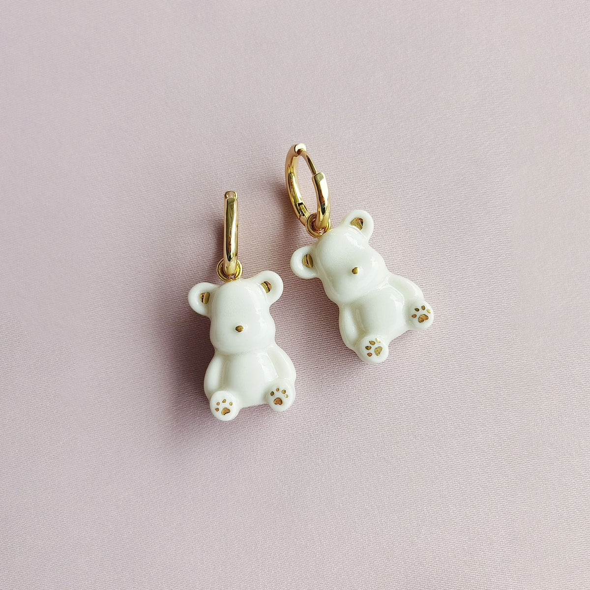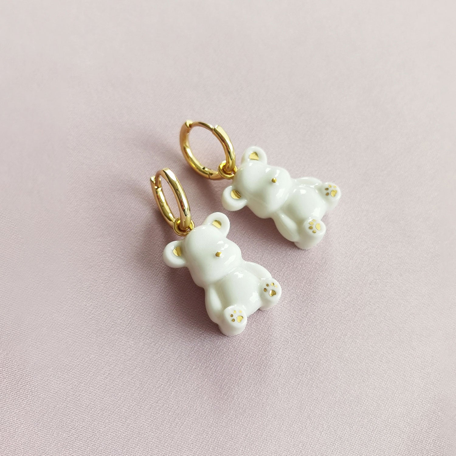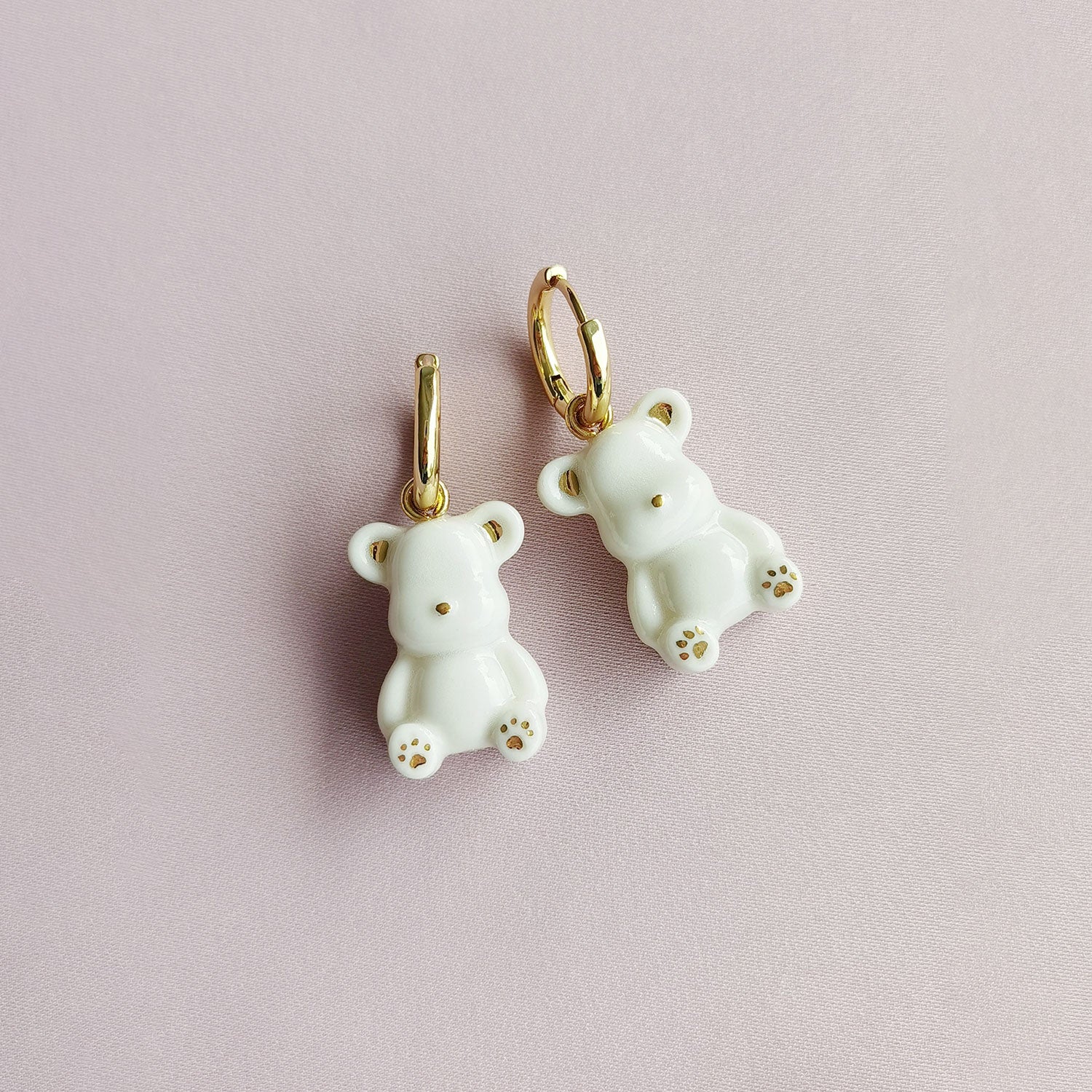These Classy White Porcelain Teddy Bear Clip-On Earrings by Poporcelain add whimsical charm to any look. Each porcelain bear is double-sided, hand-painted with delicate golden details, and finished to capture playful sophistication. Whether chosen in white, pink, or blue, these petite bears bring a joyful, polished accent to casual and special outfits alike. Their playful yet refined design makes them a delightful gift or personal treat.