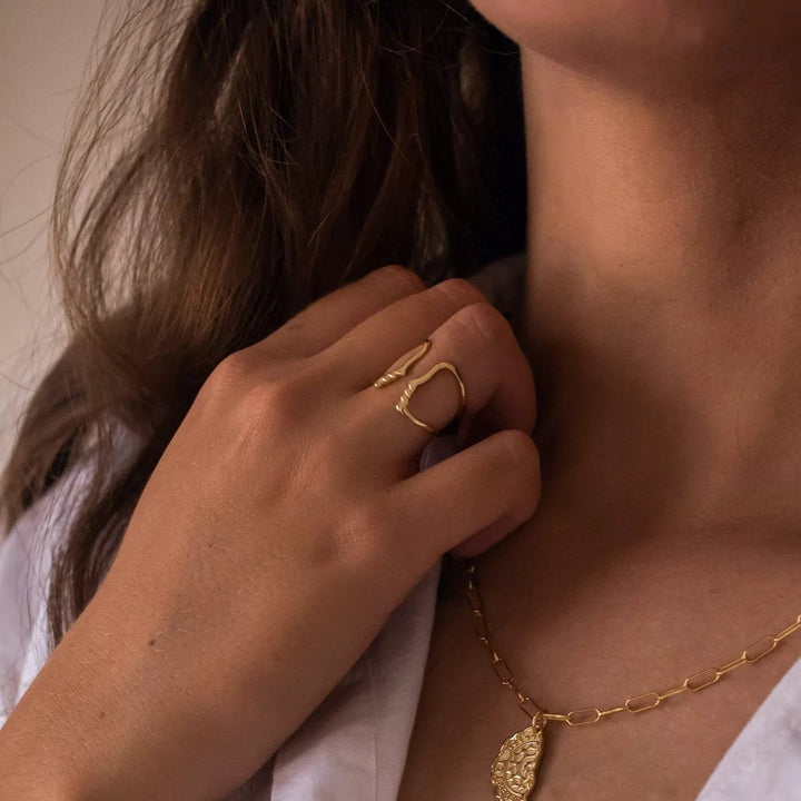 This Thick Gold Statement Face Ring by Elk & Bloom merges bold artistry with timeless glamour. Featuring an expressive double-face motif, it’s designed for those who appreciate sculptural jewelry with personality. Adjustable for all finger sizes, this statement ring captures light with its polished surface and offers a striking addition to modern wardrobes.