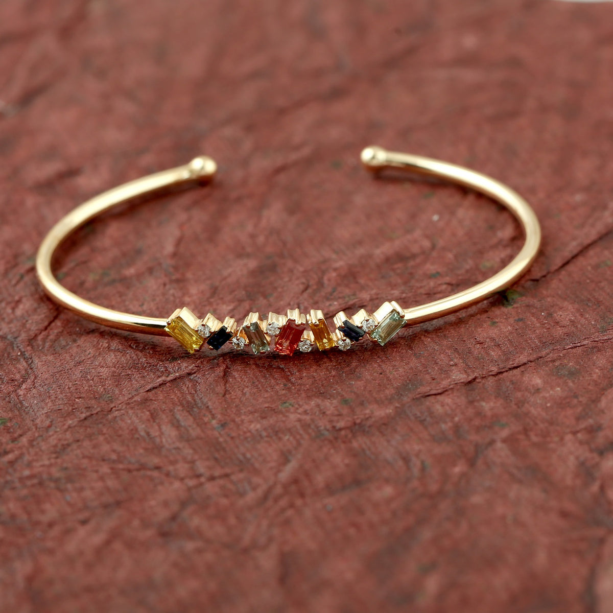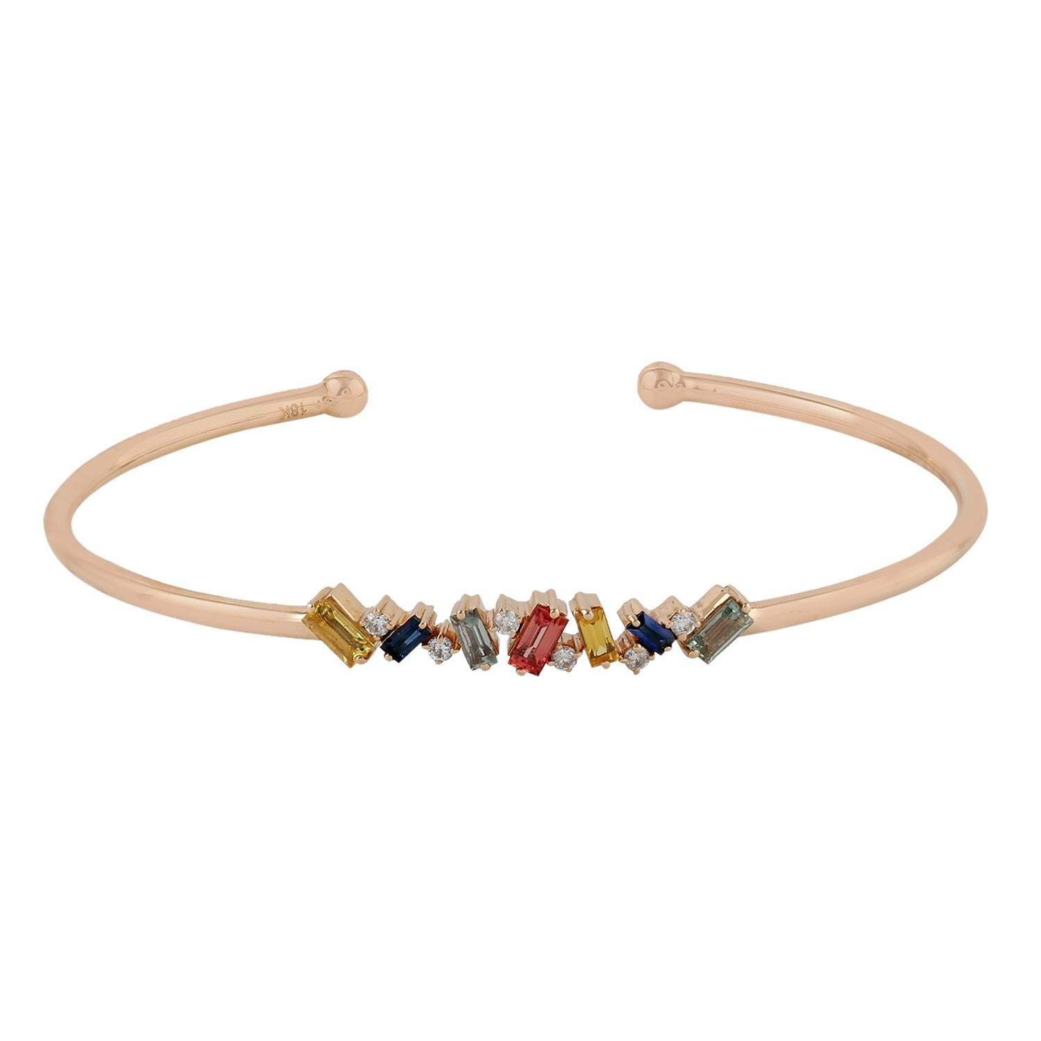 Rose Gold Diamond Multi Sapphire Cuff Bangle