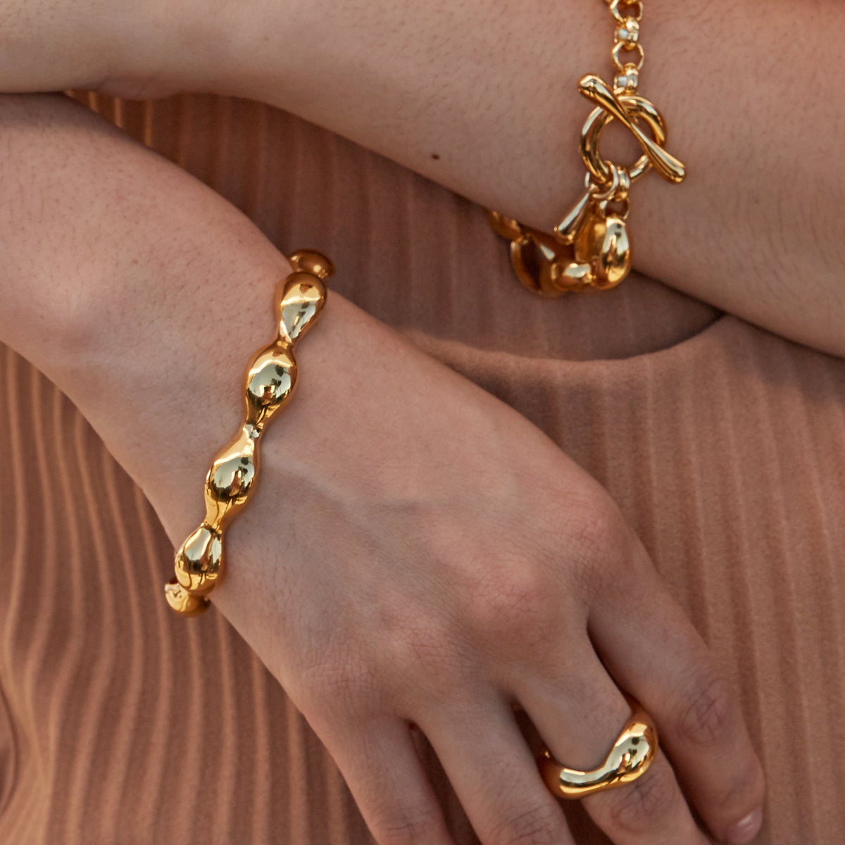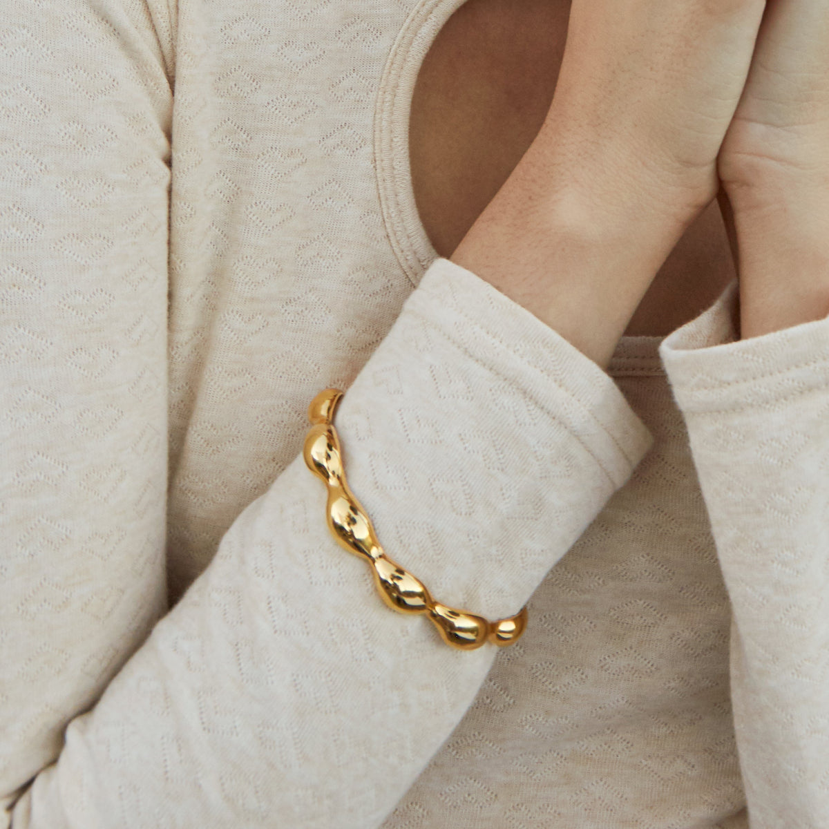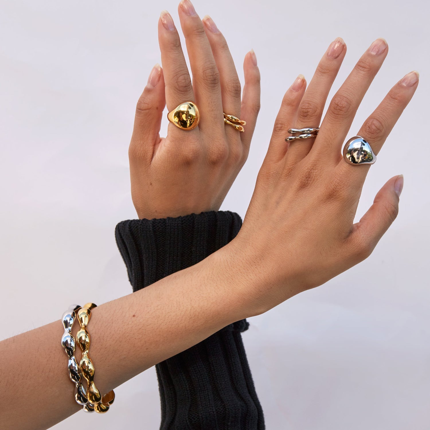A wearable sculpture, the Contour Bangle is equal parts comfort and conversation-starter. Thoughtfully shaped into an oval bangle to mimic the shape of the wrist, it sits intentionally and easily soaks up the spotlight. Each piece is manually hollowed out for comfortable, everyday wear.