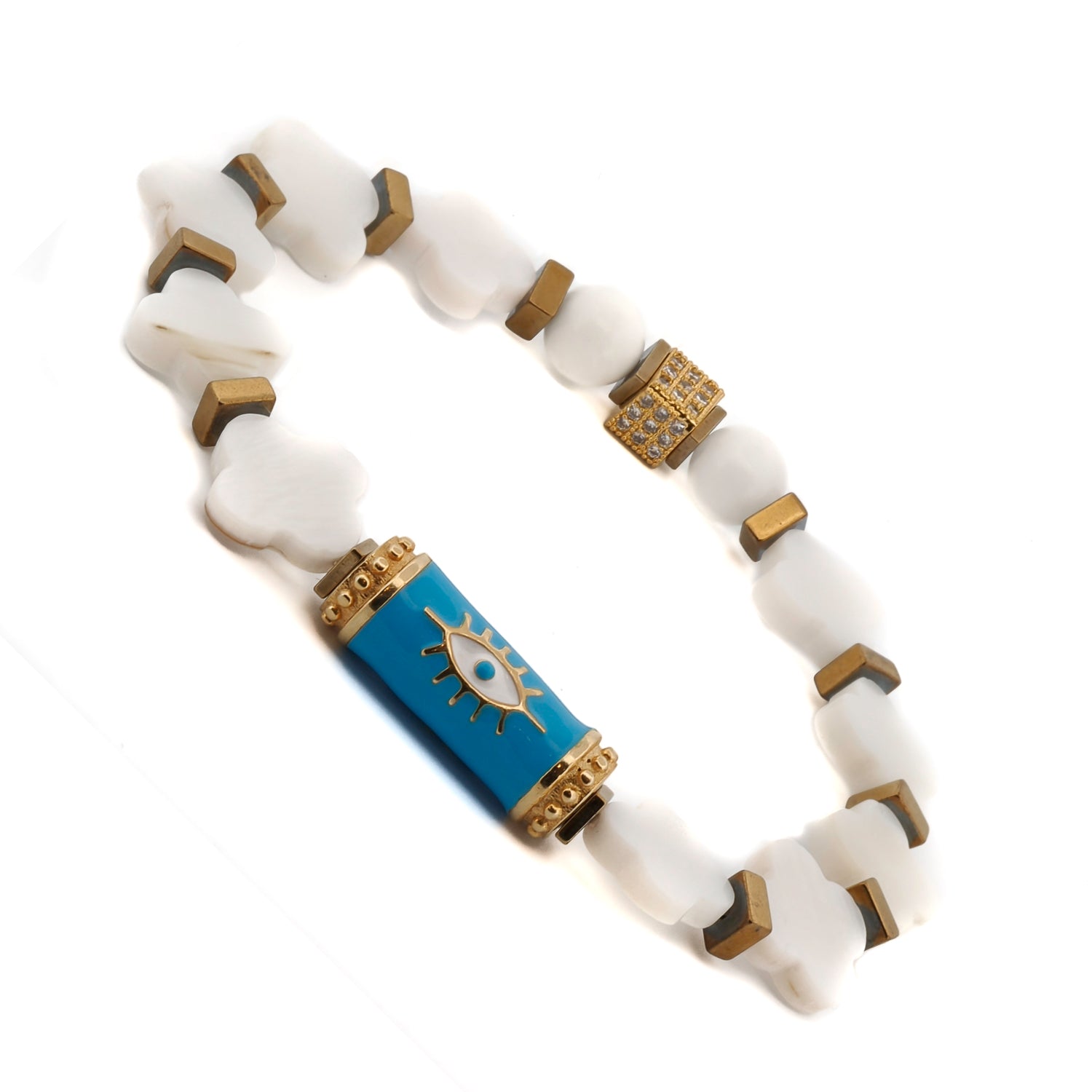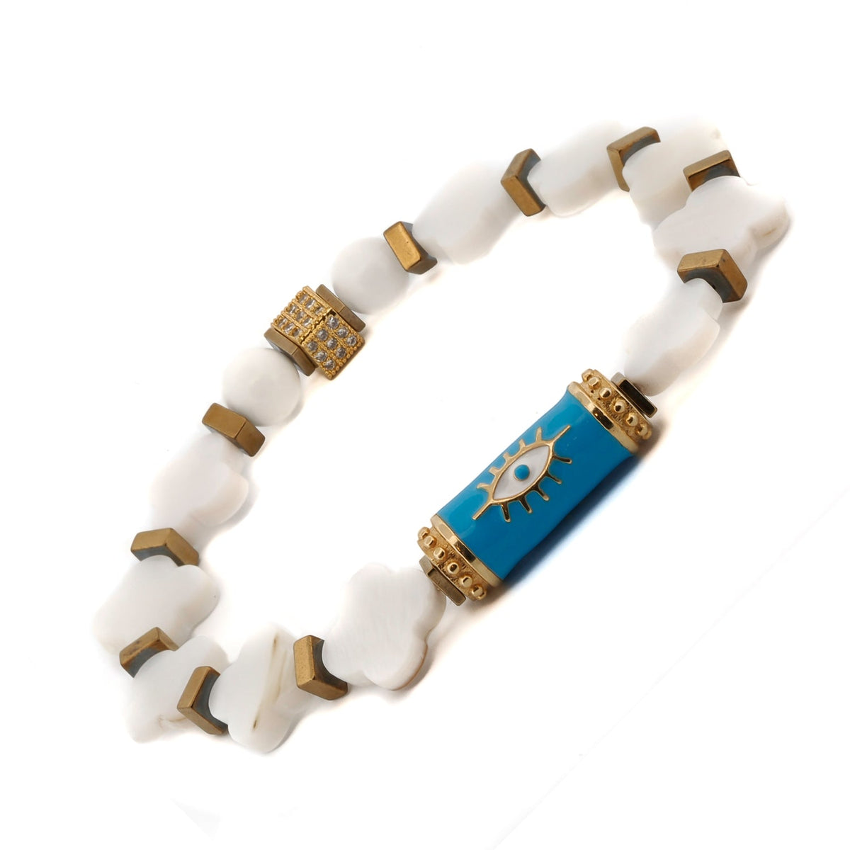 Turquoise Evil Eye White Clover Luck Beaded Bracelet