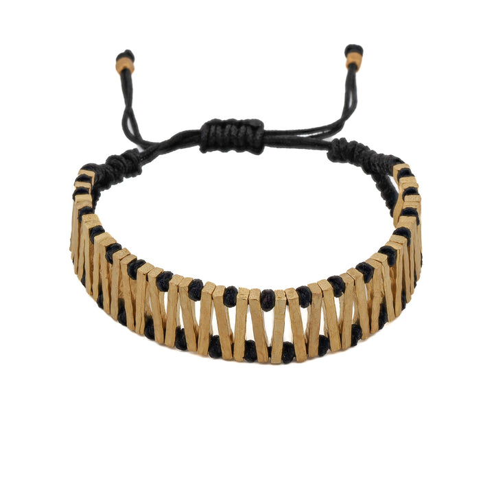 The Black & Gold Woven Unisex Adjustable Bracelet is a harmonious fusion of tranquil aesthetics, unisex elegance, and modern sophistication. The bracelet's centerpiece is a crafted from 24K gold plated brass, adding a touch of geometric allure and luxury to the design. Designed with versatility in mind, this bracelet boasts an adjustable design to fit a wide range of wrists comfortably.