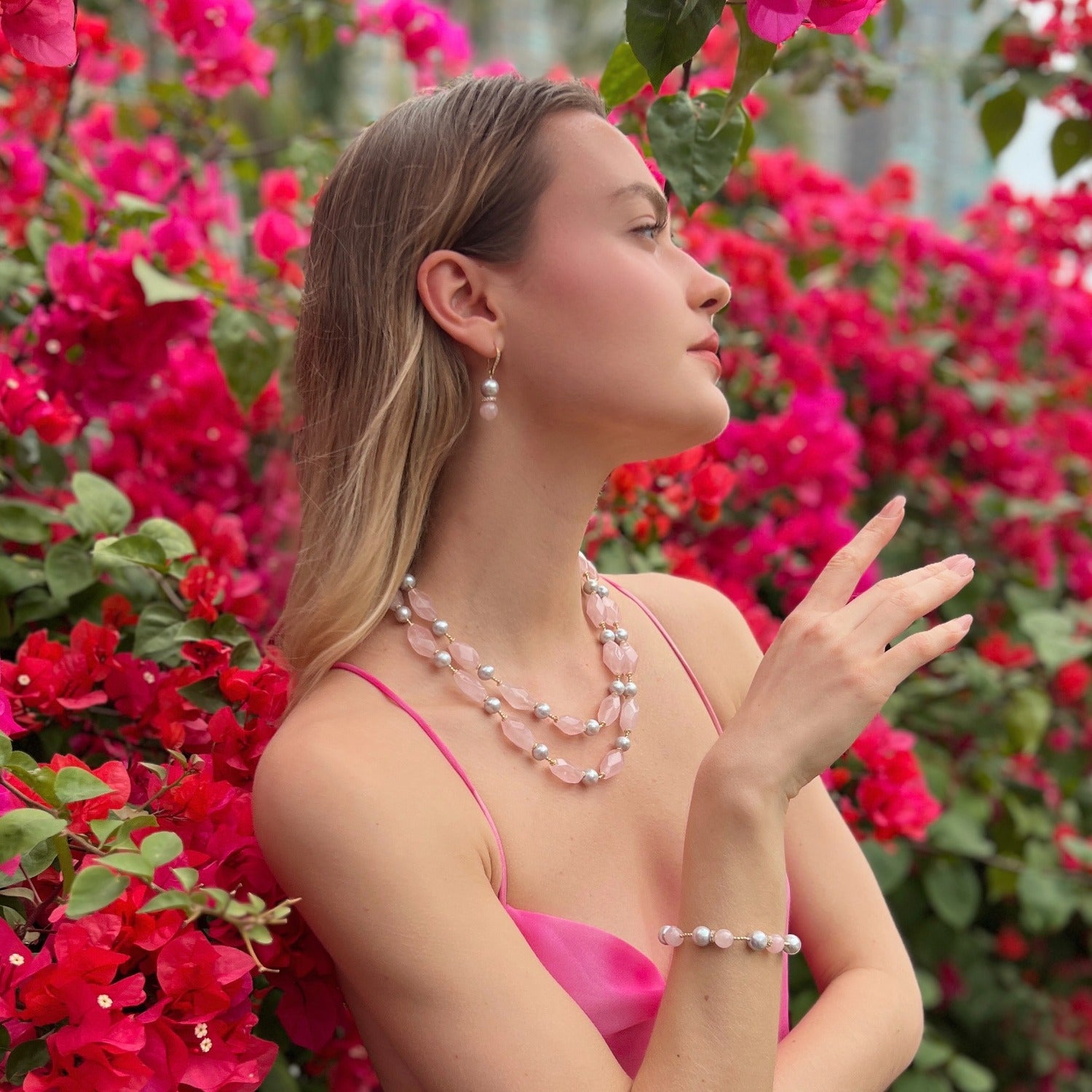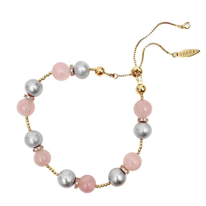 Rose Quartz Gray Pearls Adjustable Bracelet