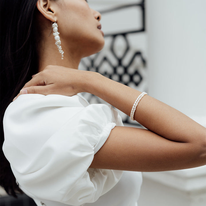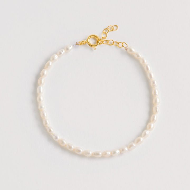 Elevate your designer jewellery collection with this beautiful rice pearl bracelet. Handcrafted from luxurious 22ct Gold vermeil-plated Sterling Silver and rice pearls, this lightweight statement pearl bracelet is timeless, perfect for a bride-to-be or gifting for her. A fabulous day to night bracelet to add a touch of glamour and style.