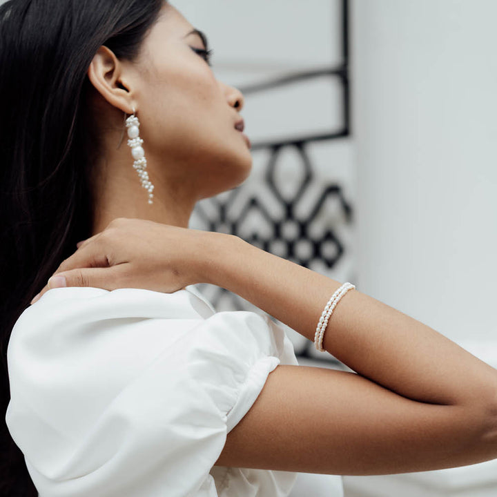 Elevate your designer jewellery collection with this beautiful Seed Pearl bracelet. Handcrafted from luxurious 22ct Gold vermeil-plated sterling silver and seed pearls, this lightweight statement pearl bracelet is timeless, perfect for a bride-to-be or gifting for her. A fabulous day-to-night bracelet to add a touch of glamour and style.