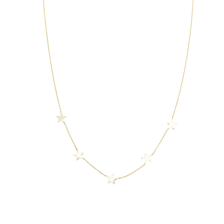 This Star Sterling Silver Necklace - Gold by Spero London captures the essence of starlight with five luminous stars delicately stationed along a fine chain. Designed to transition seamlessly from day to night, it’s a versatile piece that layers beautifully or shines alone. With its celestial motif, it serves as a reminder to carry light and brilliance wherever you go.