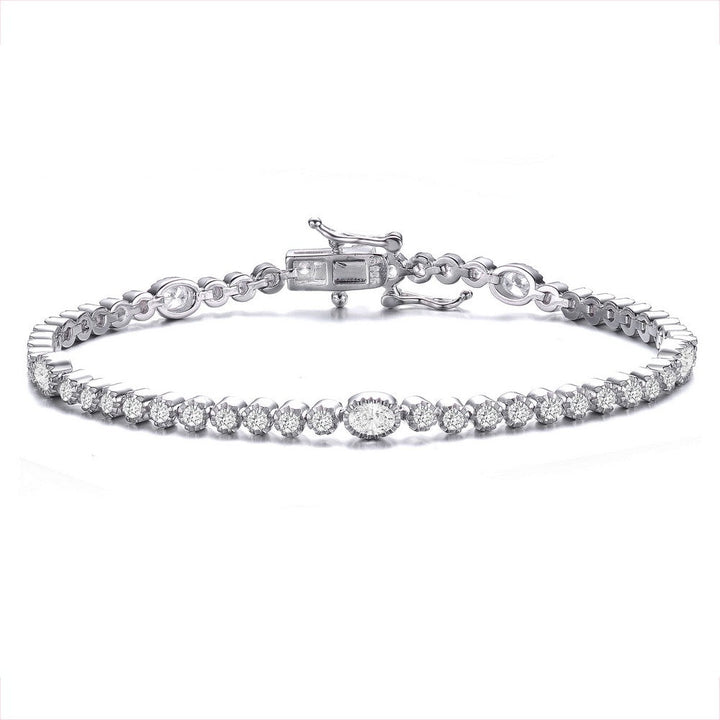 This classic style tennis bracelet features clear round cubic zirconia with clear oval cubic zirconia. This bracelet has a gentle design making it versatile to be worn with any outfit.