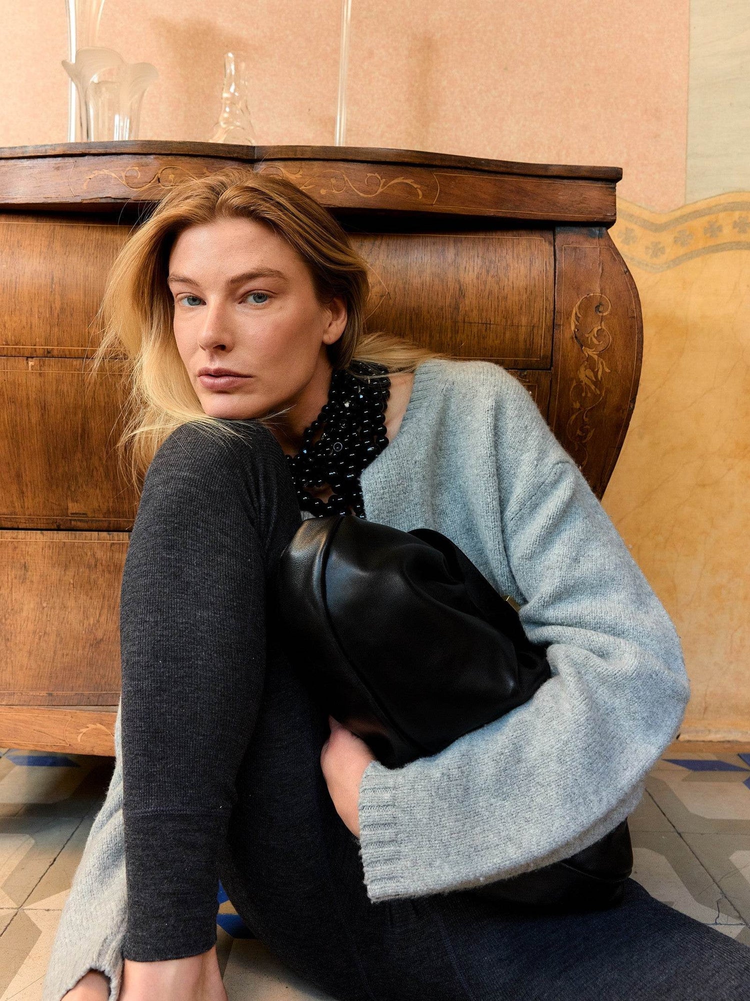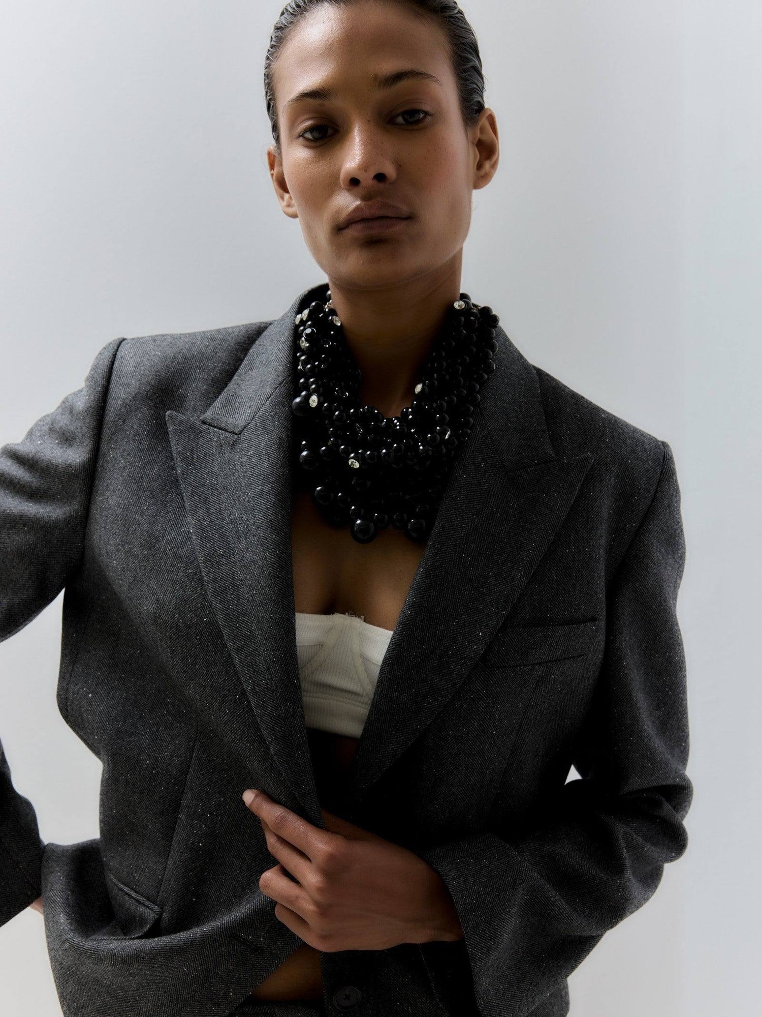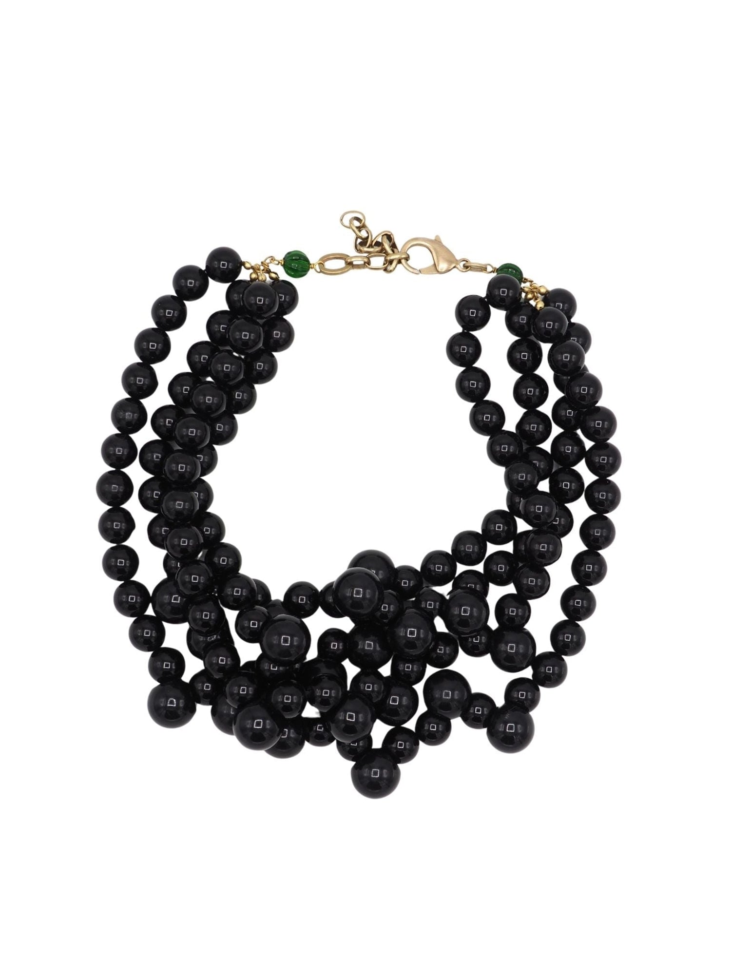 This Cascabeles Necklace - Black by Sita Nevado is a bold, sculptural design that plays with volume and symmetry. Four cascading strands of resin beads in varying sizes form a dramatic centerpiece, giving the necklace both weight and striking presence. Perfect for adding contemporary edge to eveningwear.