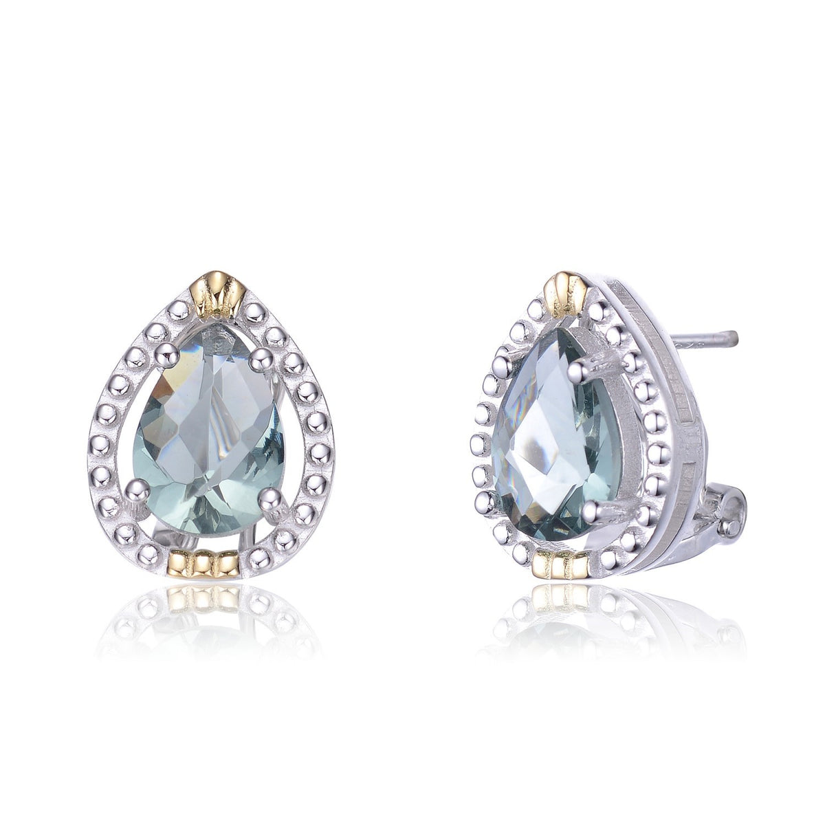 These earrings are crafted from 925 sterling silver and are set with blue pear-cut cubic zirconia stones. They are secured with omega clasps.
