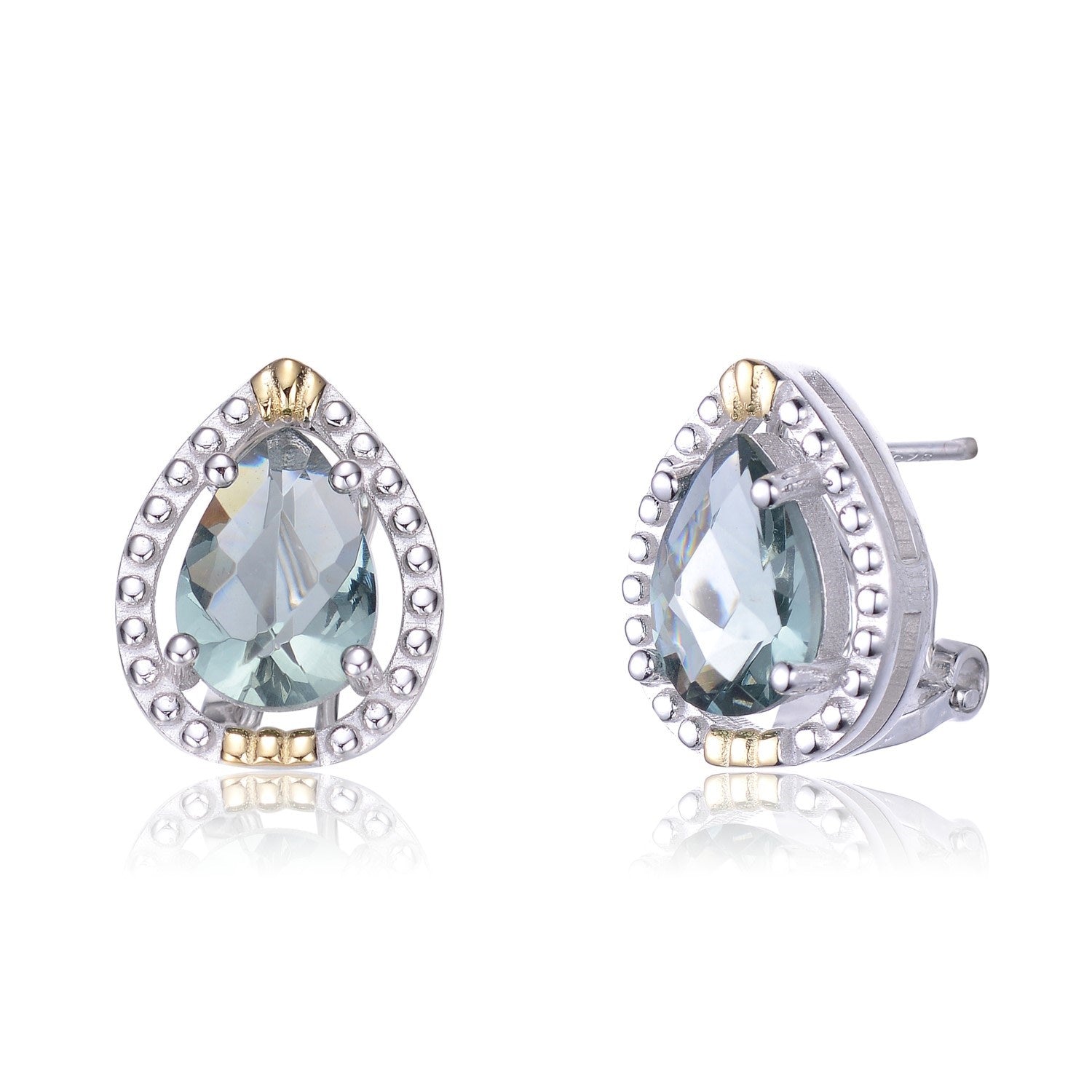 These Sterling Silver Blue Cubic Zirconia Pear Shape Earrings by Genevive Jewelry are a dainty and elegant accessory that adds a touch of refined sparkle to your look. The beautiful blue pear-cut cubic zirconia stones are set in delicate prongs, creating a timeless and classic design. These earrings are a perfect statement piece for a special occasion or to add a touch of brilliant color to your everyday style. Their omega clasps ensure they are secure and comfortable to wear.