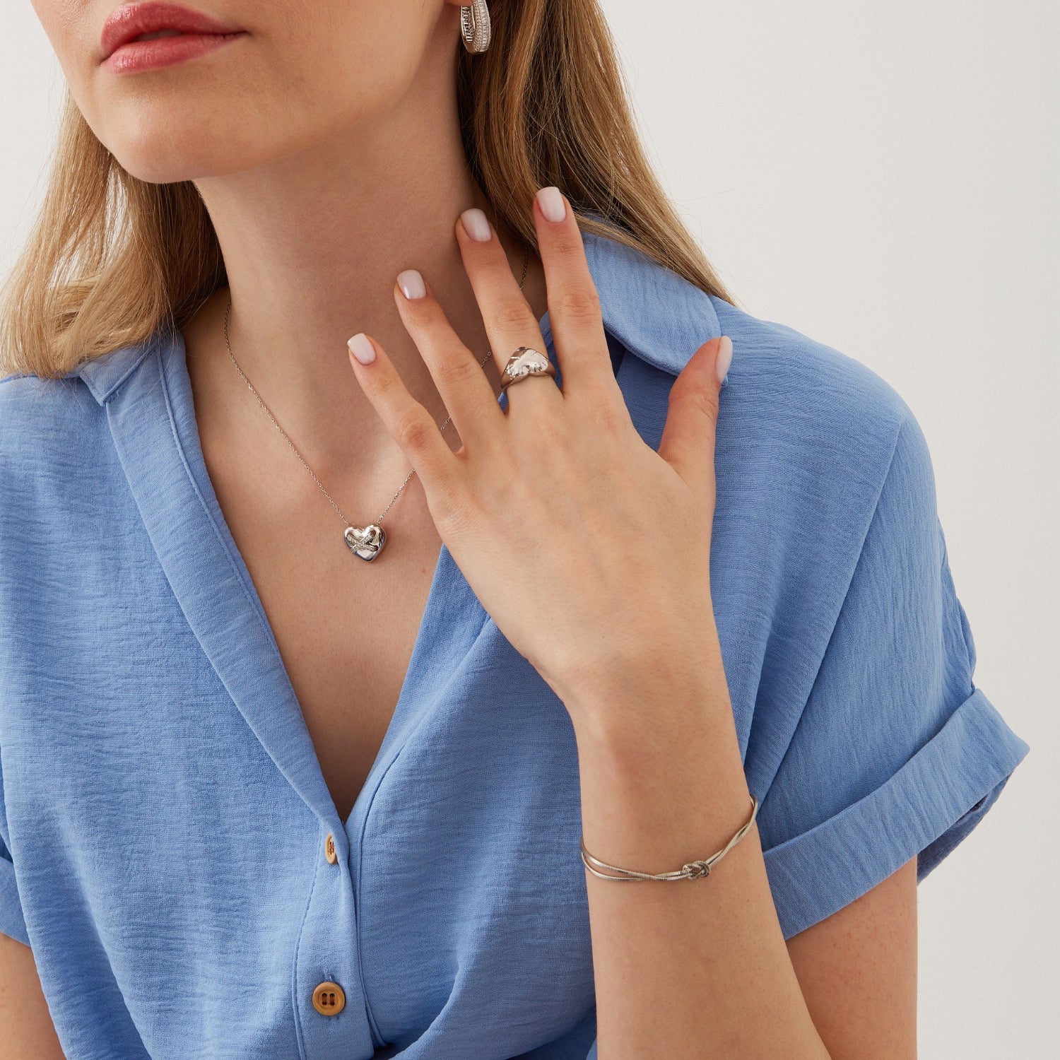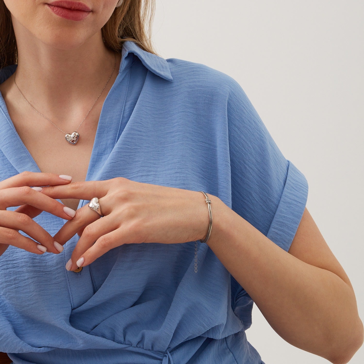 This Sterling Silver Snake Chain Knot Bracelet - Silver by Spero London is a chic and bold accessory designed to make a sophisticated statement. The sleek, elegant snake chain features a graceful knot detail, giving it a modern and artistic flair. Whether you choose to wear it alone for a minimalist look or layer it with other pieces for a more dynamic style, this bracelet is an essential addition to any jewelry collection, symbolizing a confident and fashionable personality.