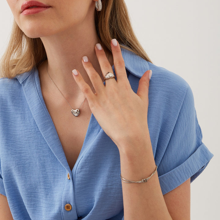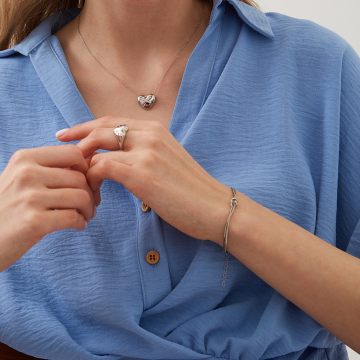 Sterling Silver Snake Chain Knot Bracelet - Silver