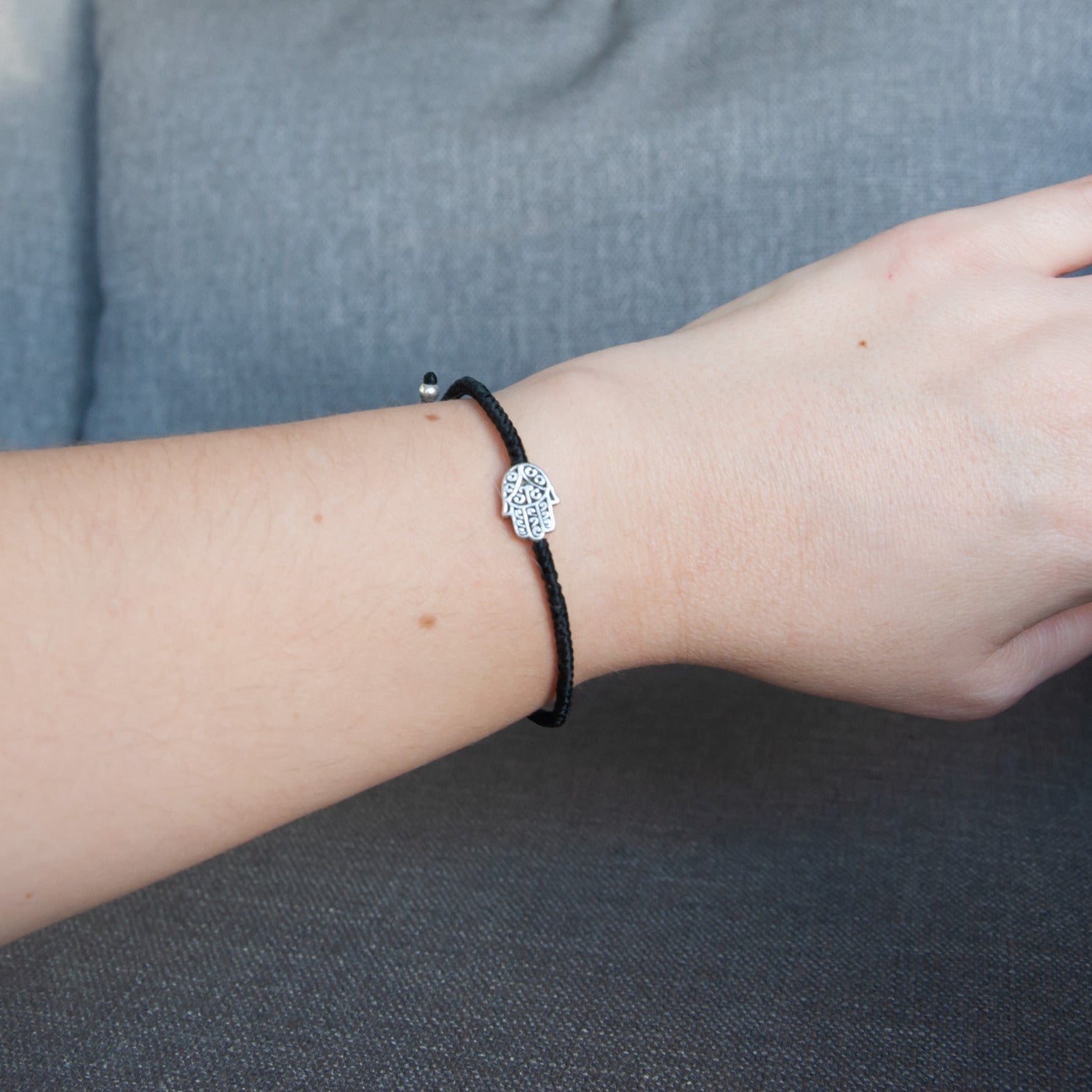 Bring the hamsa into you habits with this rope hamsa bracelet to deliver it in fine form. It will offer itself to you in a beautiful silver piece to capture the light. The negative space is also really effective for drawing attention to this everyday rope bracelet. Made from vegan cord, this will help minimize your consumership footprint and help you live more authentically without losing your fashion sense, either. Durable and waterproof to hold up to daily wear! Why our waxed cord is vegan? because it's not animal based (Beeswax). The more you wear it the cooler it looks!