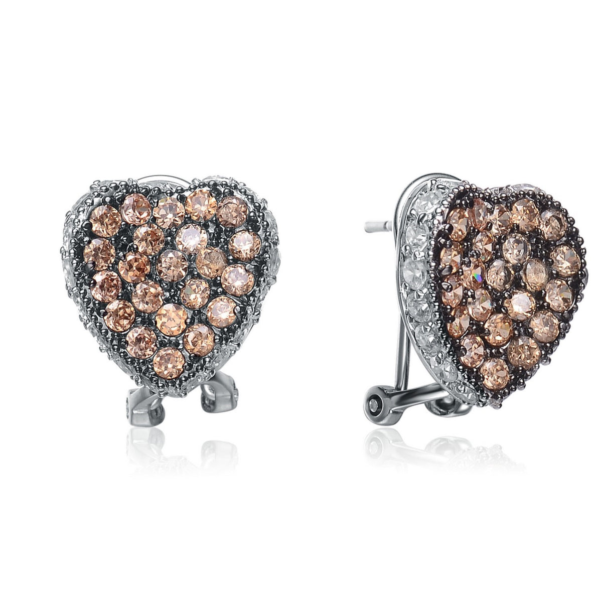 Sterling Silver White Gold Plated With Pink Cubic Zirconia Pave Heart Earrings