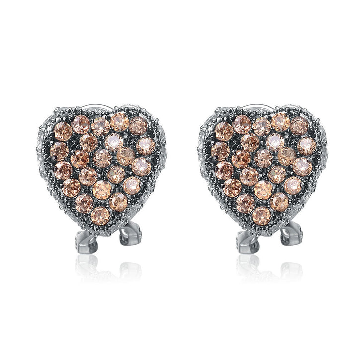 These earrings are crafted from sterling silver with white gold plating. They feature a heart shape made of pavé pink cubic zirconia stones.