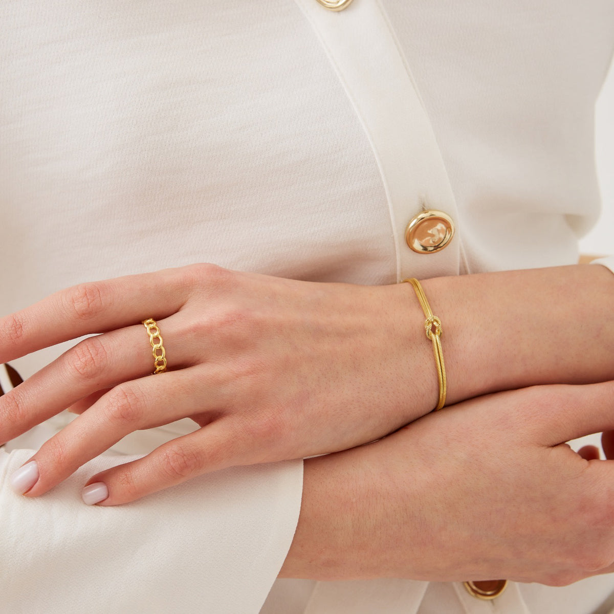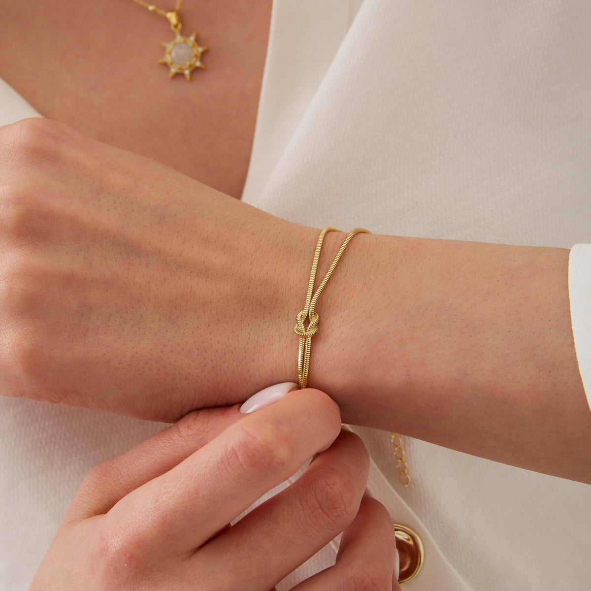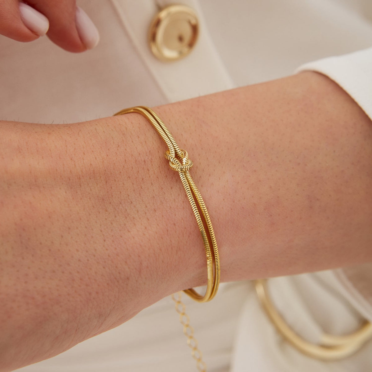 Sterling Silver Snake Chain Knot Bracelet - Gold