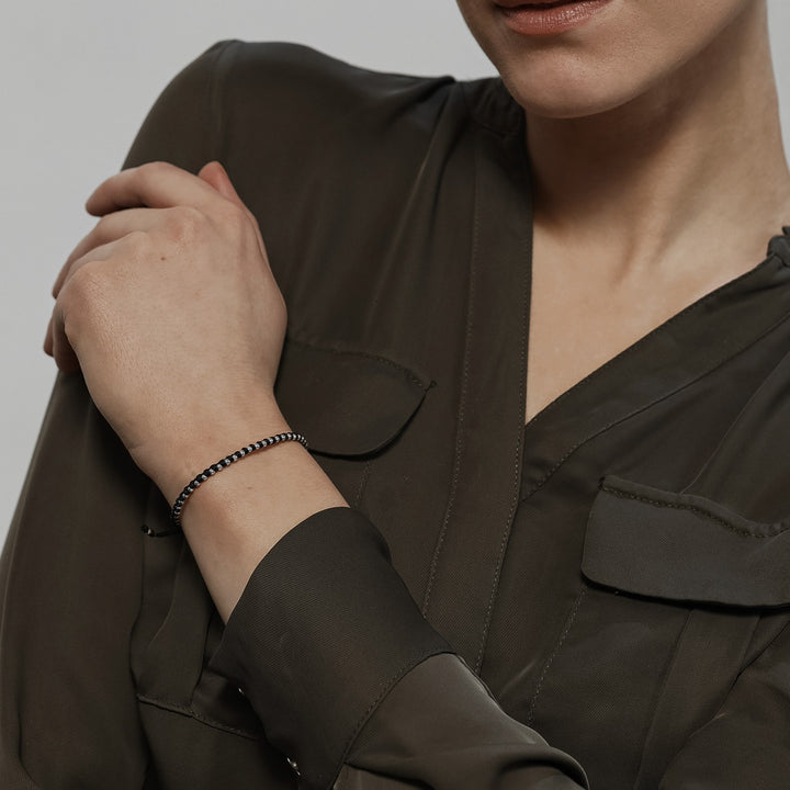 Explore the grace of our 'Spitafields' Friendship Bracelet, a finely crafted piece adorned with tiny silver beads, meticulously woven knot by knot. This adjustable and waterproof accessory not only exudes timeless elegance but also embodies the enduring spirit of friendship. Dive into the intricate craftsmanship as delicate silver beads gracefully embrace your wrist, each knot telling a story of connection. Elevate your style with the subtle yet distinctive beauty of the 'Spitafields' bracelet – a versatile adornment that celebrates lasting bonds. Wrap yourself in the allure of meaningful connections with our 'Spitafields' Friendship Bracelet, a charming expression of elegance and enduring friendship. It doesn't need any care, wear it all the time, just keep it away from chemicals.