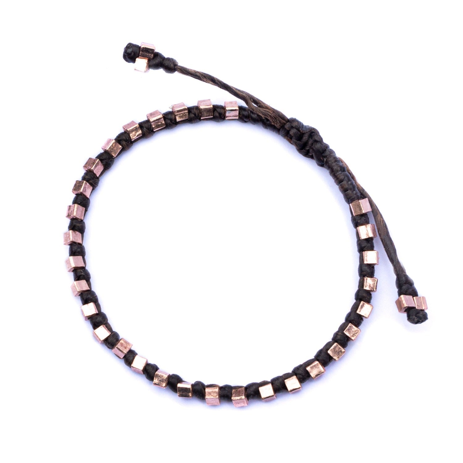 Introducing our handmade 'Aurora' bracelet for women, inspired by the magical northern lights. This stunning brown cord bracelet is adorned with rose gold vermeil beads, adding a touch of elegance to the design. It is not only stylish but also waterproof, perfect for everyday wear. The 'Aurora' bracelet is a perfect gift for her, whether it's for a birthday, anniversary or any special occasion. Get your hands on this beautiful piece of jewellery today and add a touch of elegance to your outfit. The metal base is sterling silver. Shop now for this waterproof rose gold bracelet for women