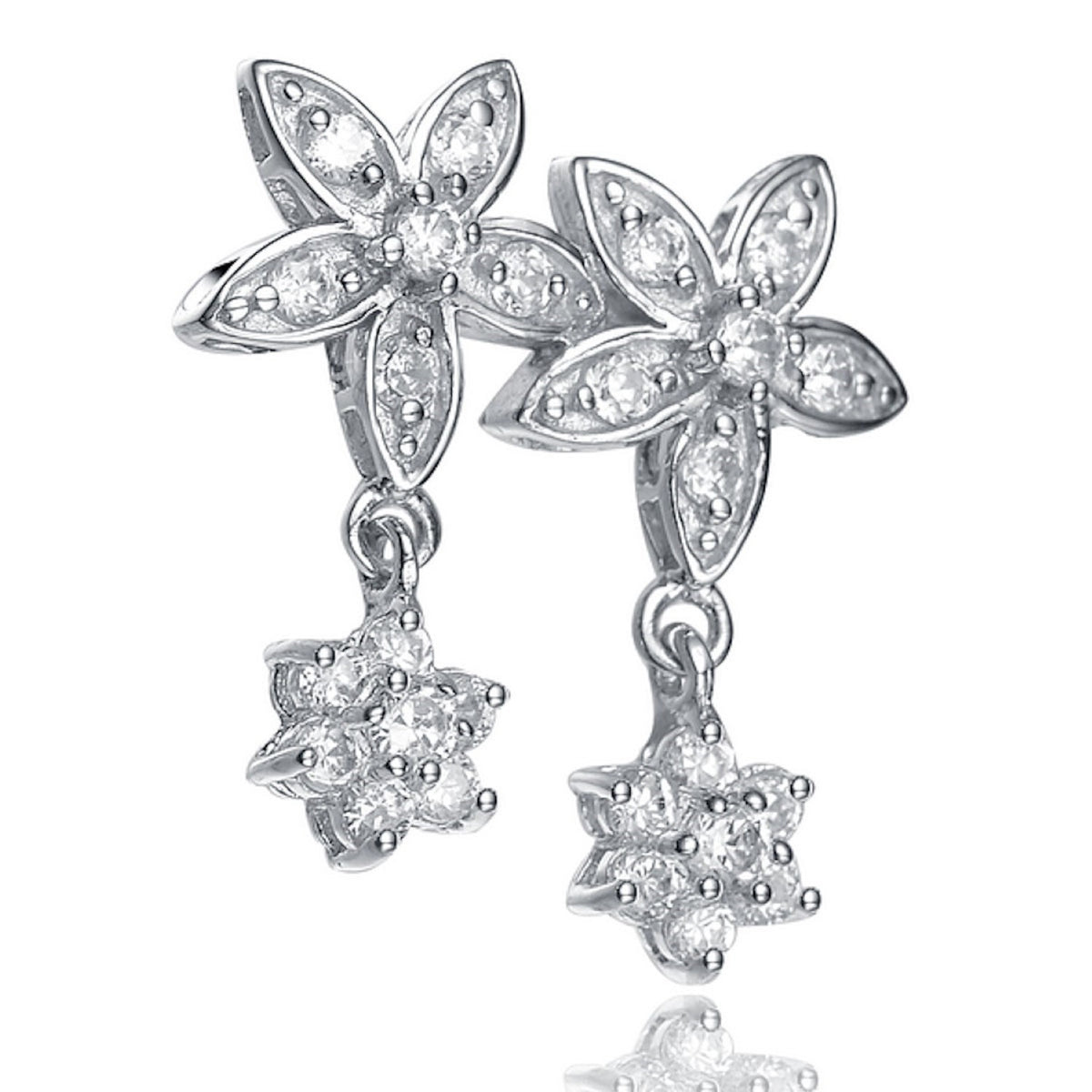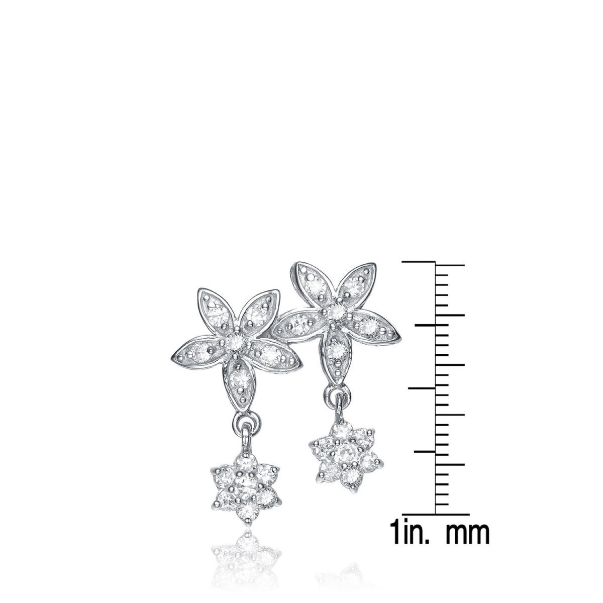 Sterling Silver Cubic Zirconia Multi-Flower Earrings